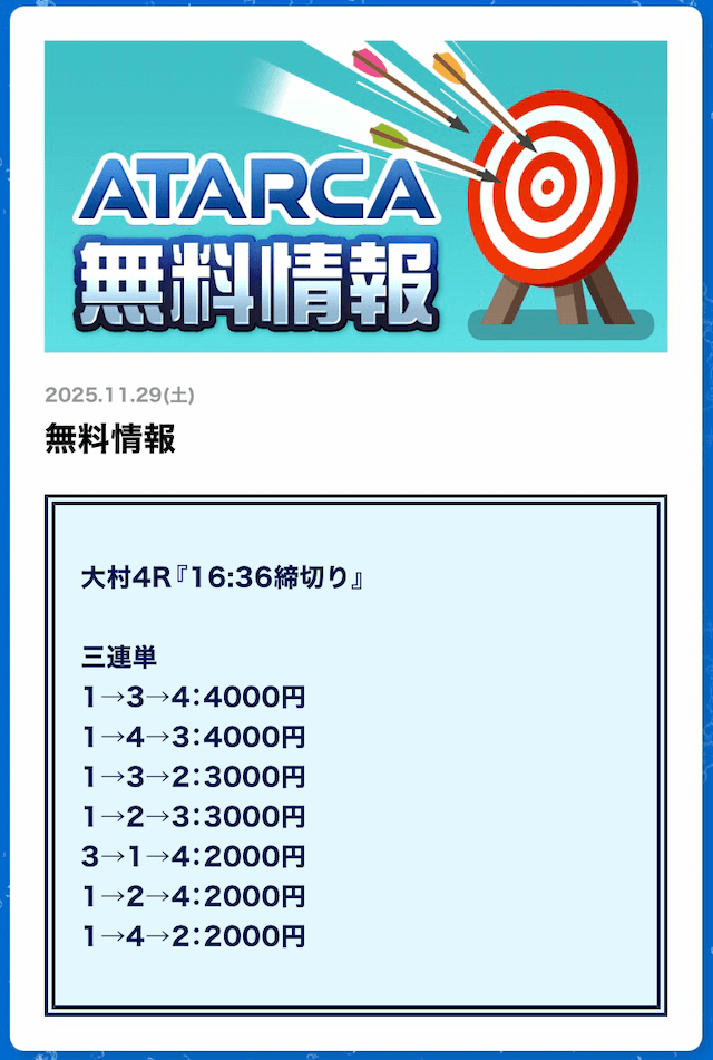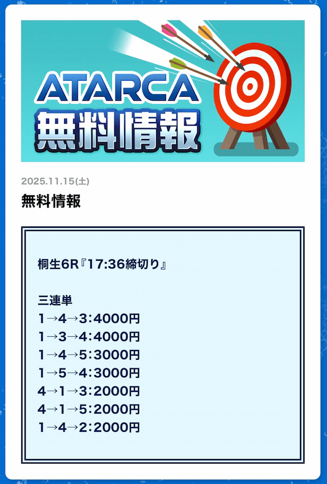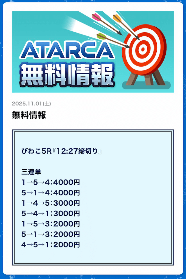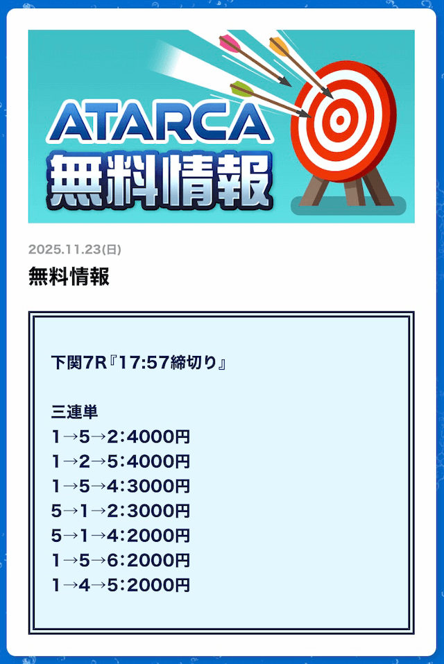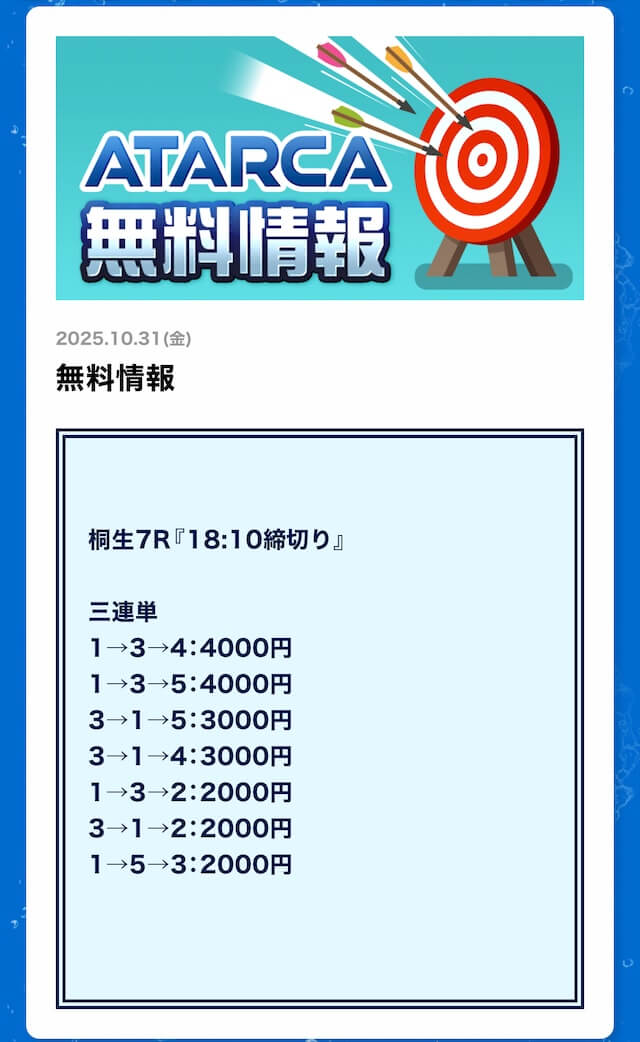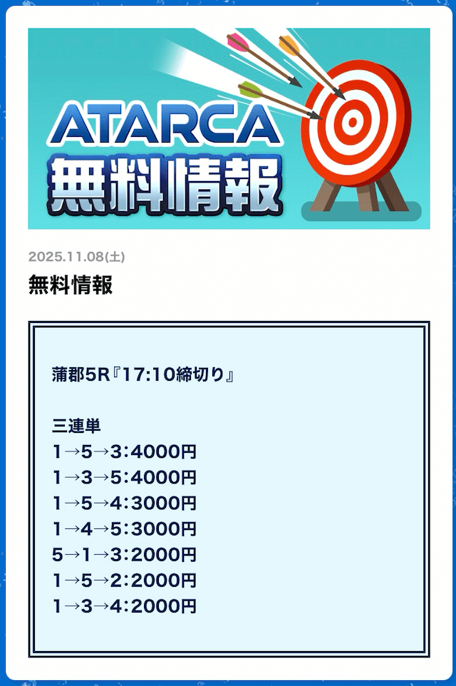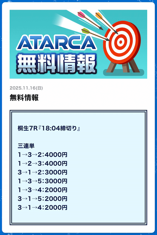 ATARCA(アタルカ)はどのような予想を提供をしてる?無料予想をレビュー