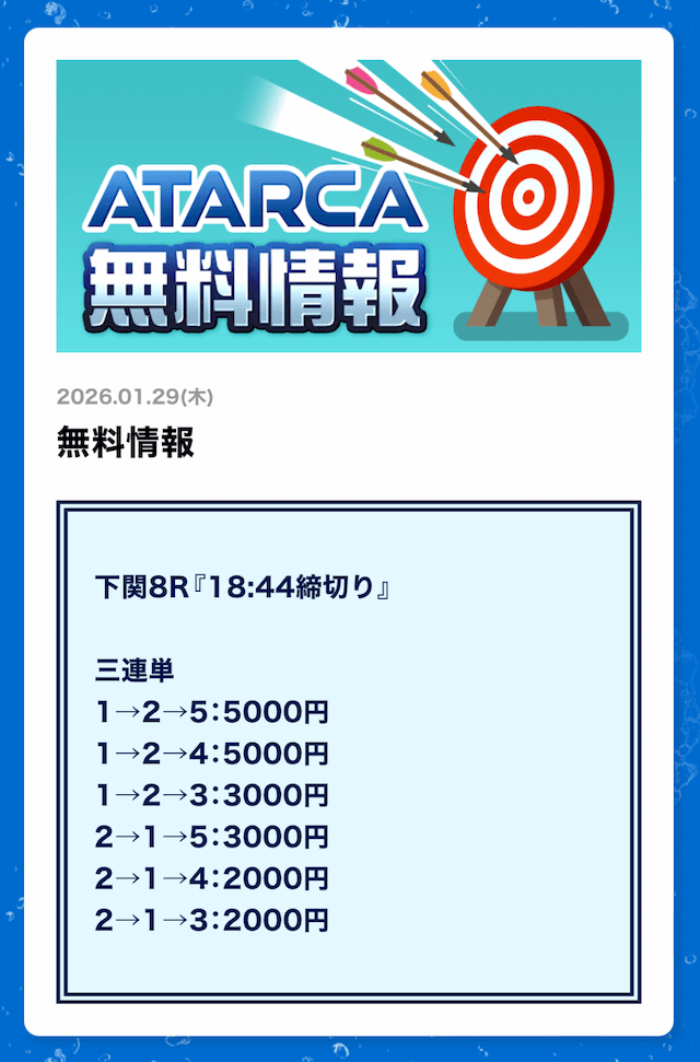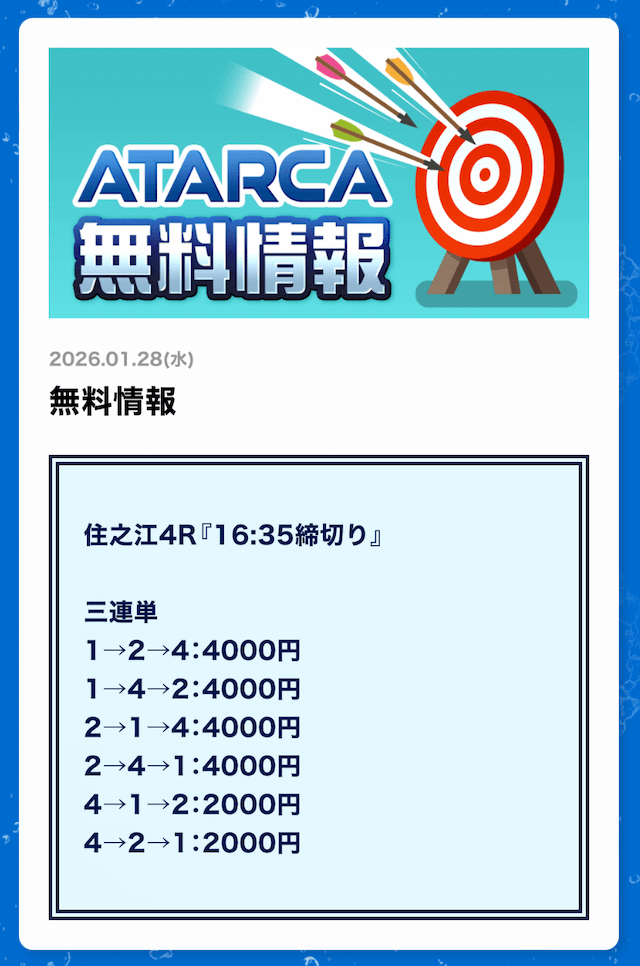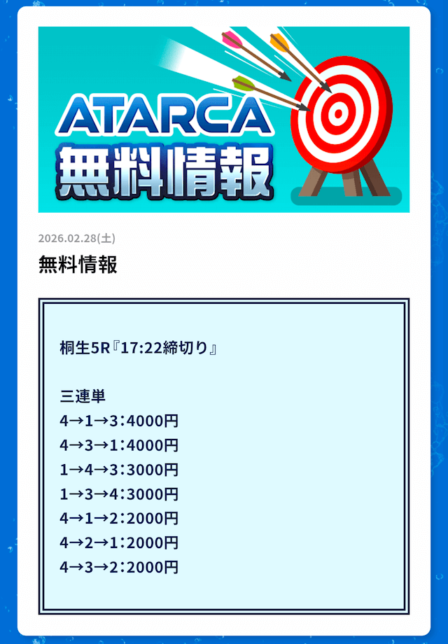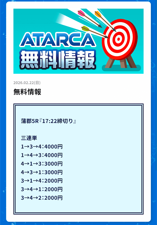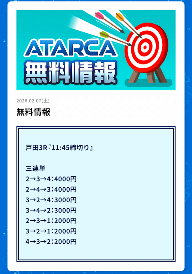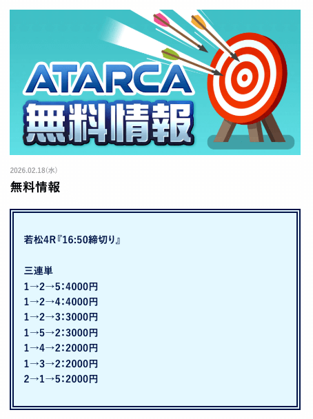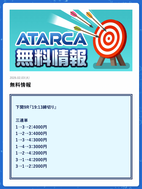 ATARCAの無料予想の感想