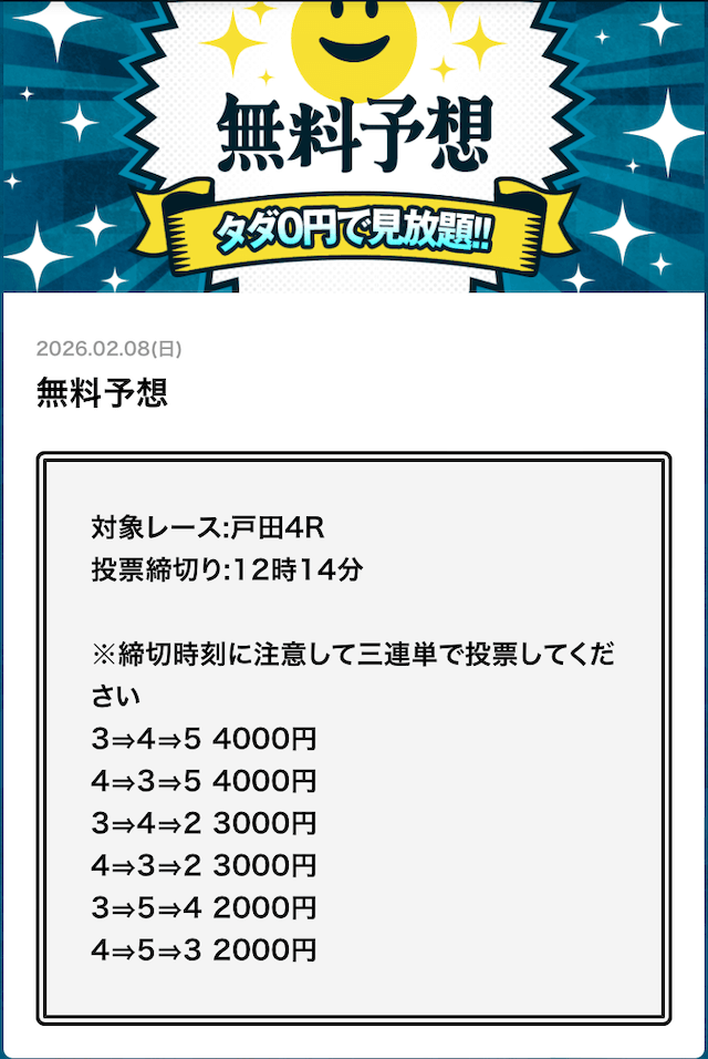 | 08月16日戸田12R | 1-5-3 | 18,000円 | 34,000円 | 189% | |