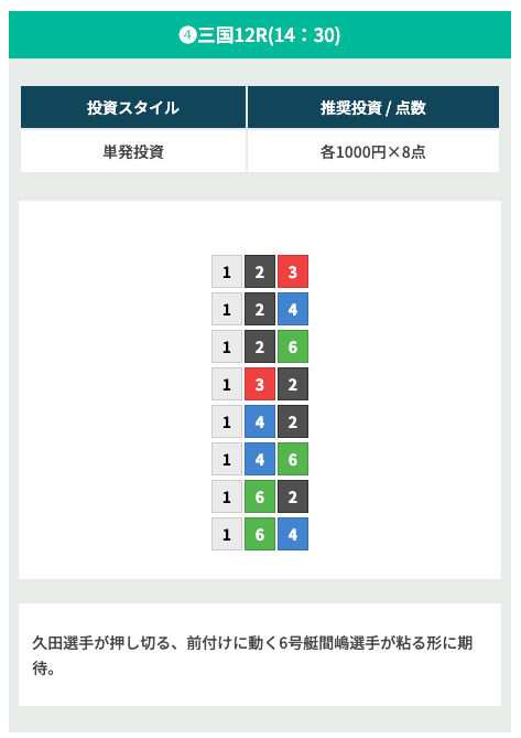 | 03月09日三国12R | 1-4-2 | 8,000円 | 28,000円 | 350% | |