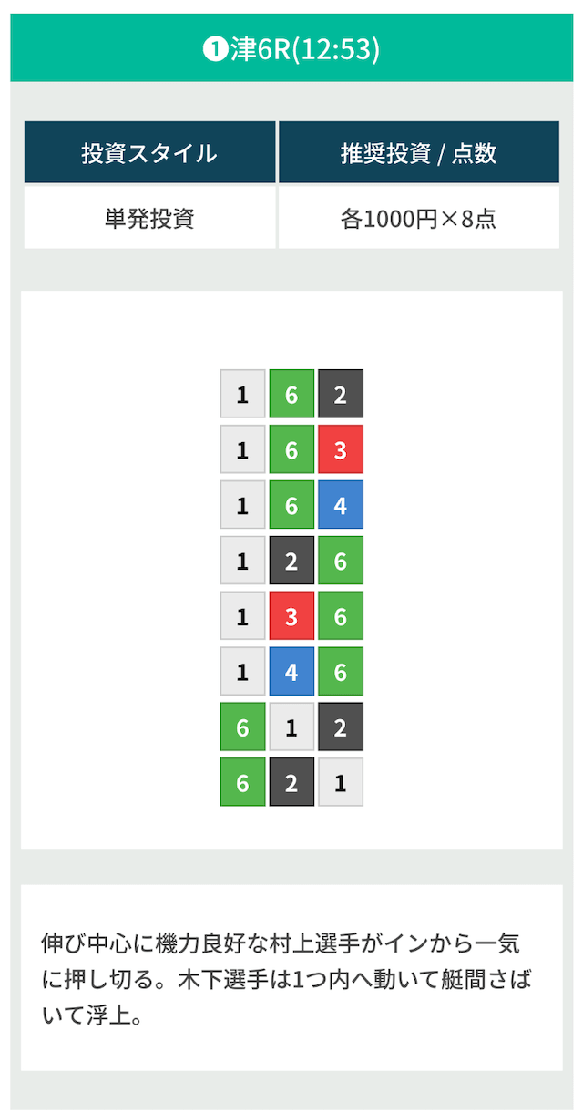 そのため、2号艇や6号艇などの実力のある選手に集まっています。