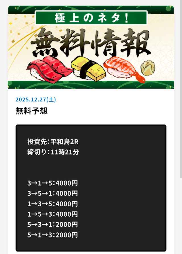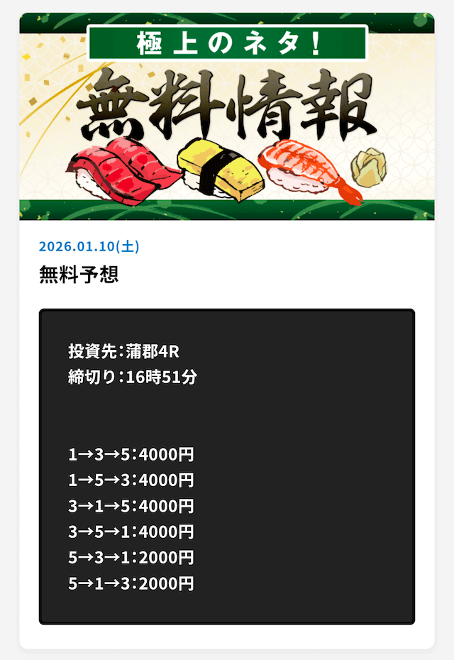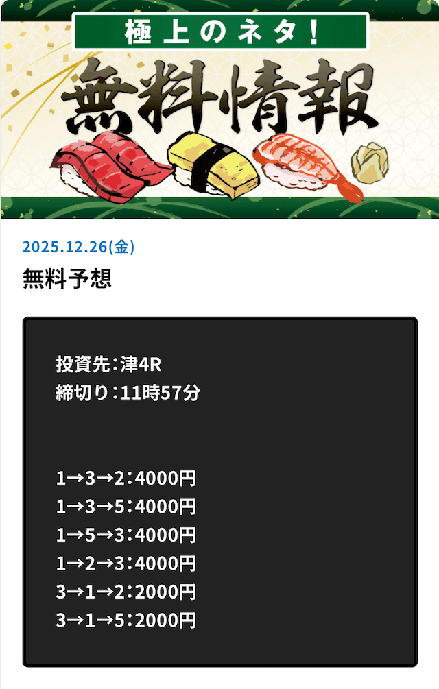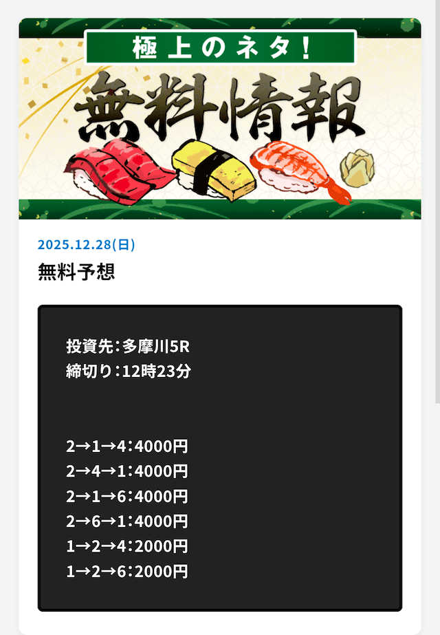 最新無料予想結果