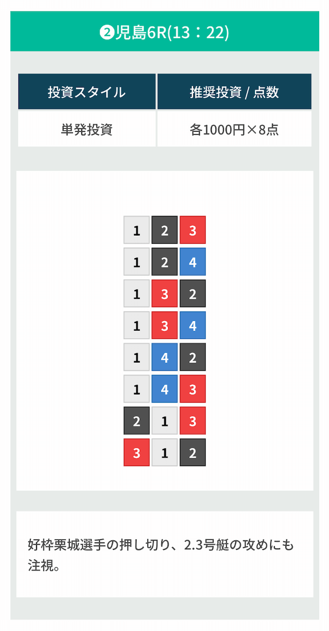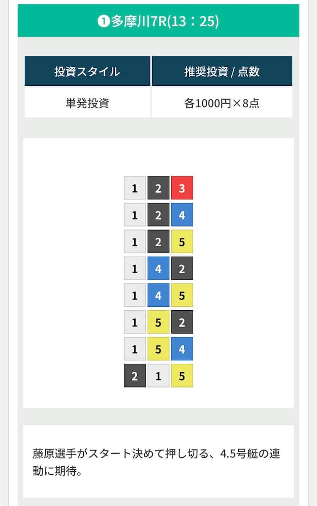 先ほど申し上げたように、1号艇を軸に堅く予想をすることをおすすめします。