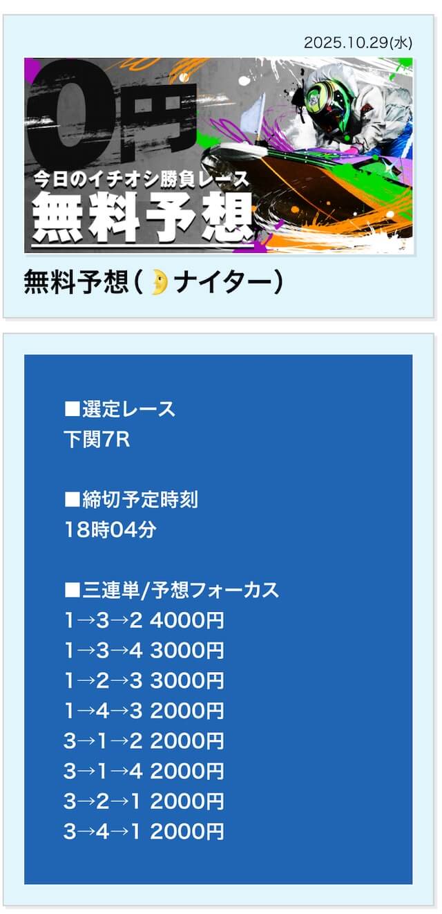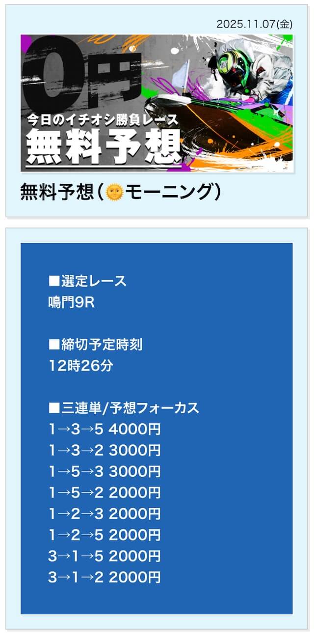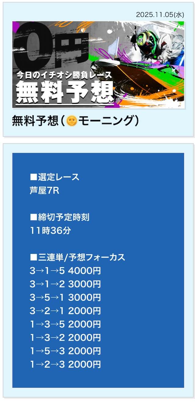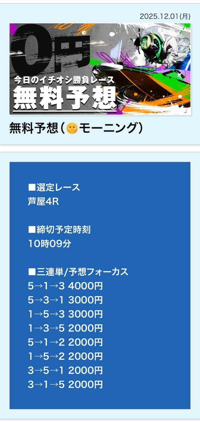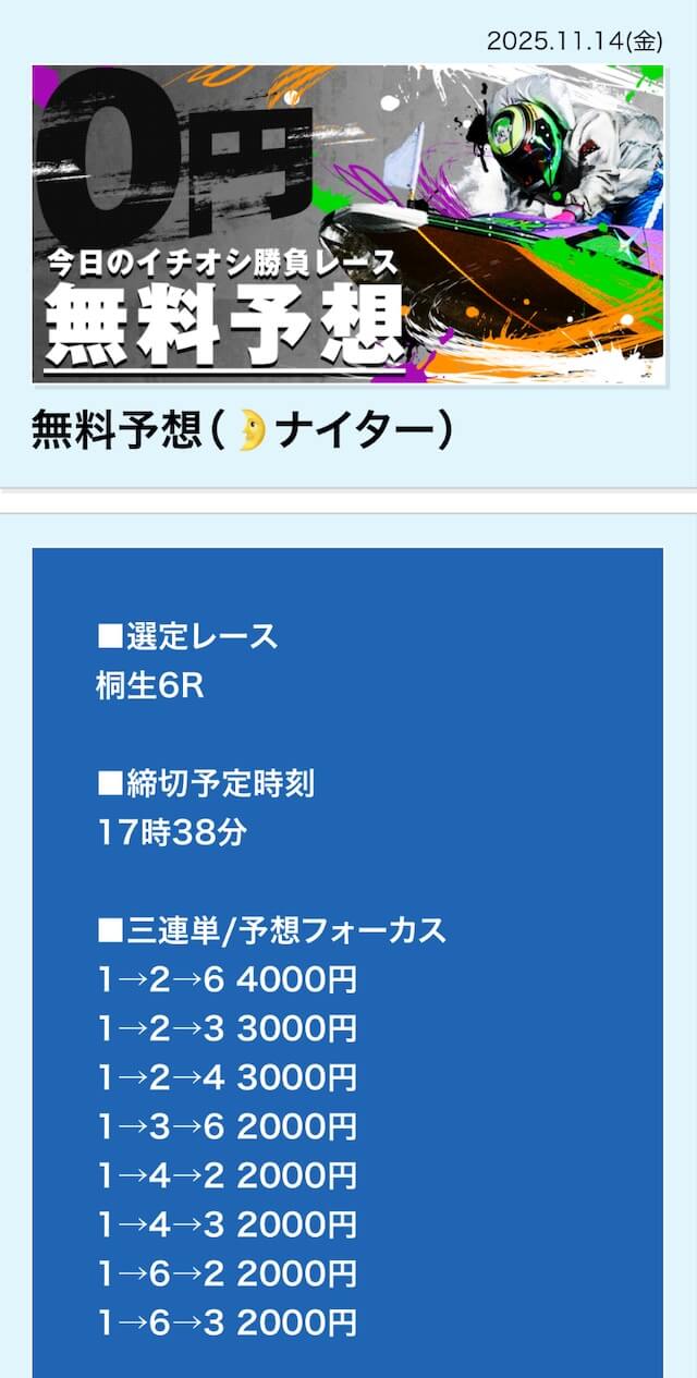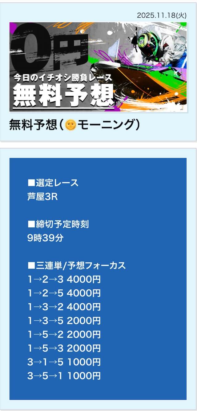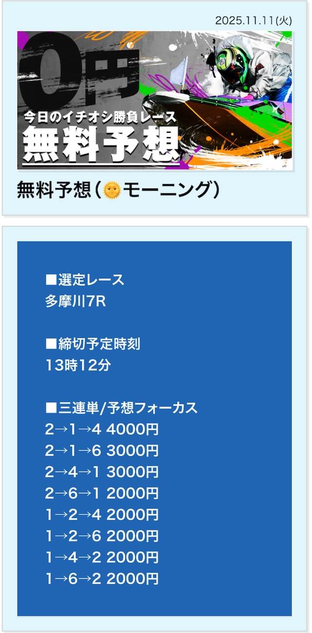無料予想は毎日公開で投資金額は高め
