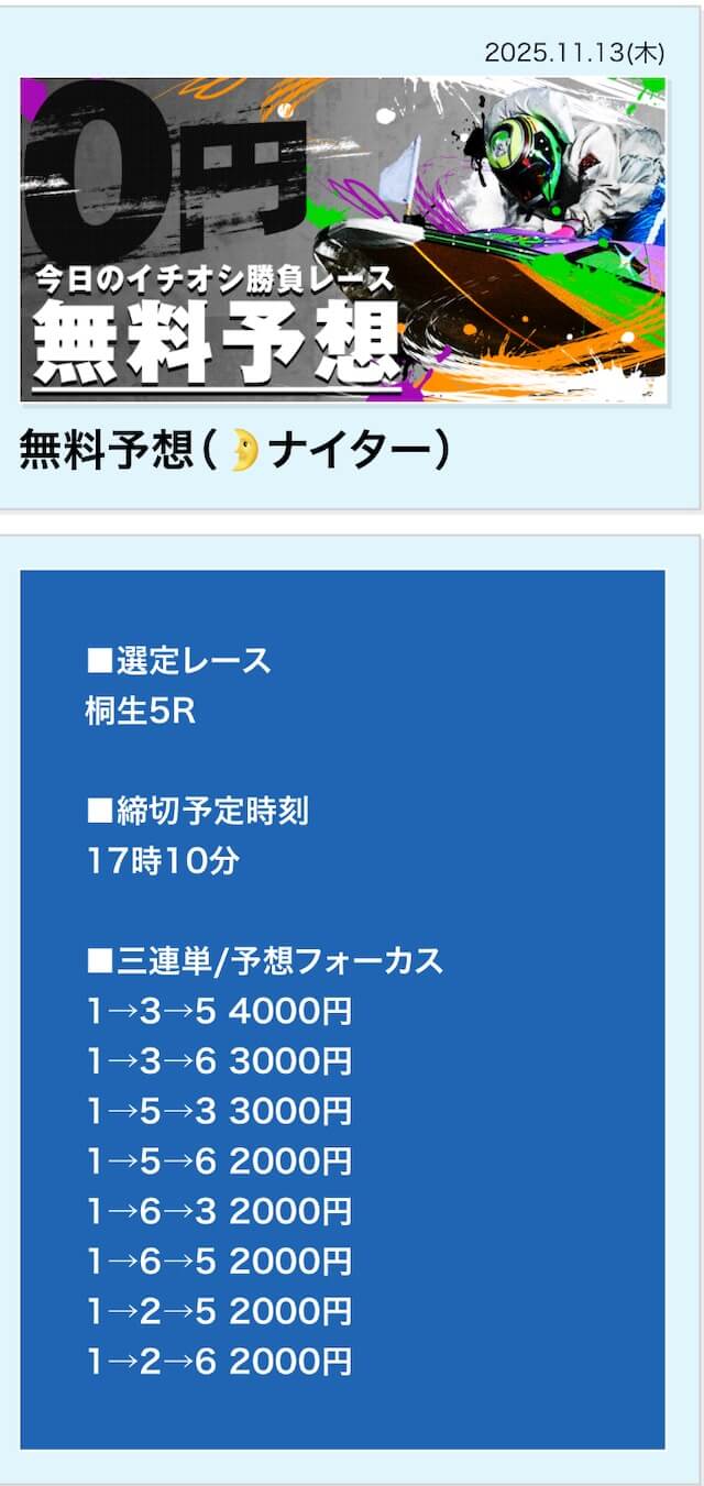 3戦3勝なのでかなり安定した予想サイトだと思います。