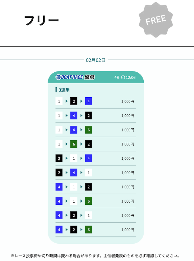 誰でも無料で予想を見ることができるので、今すぐ受け取ってみましょう!