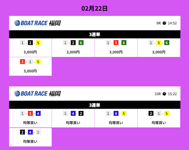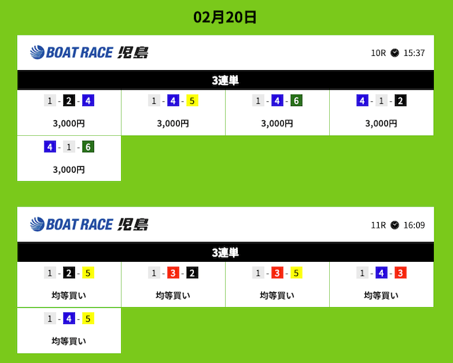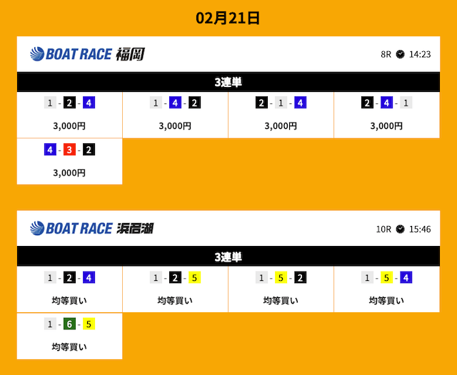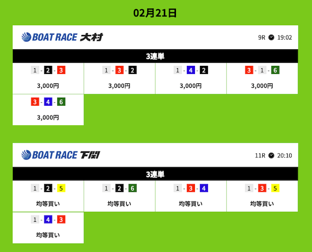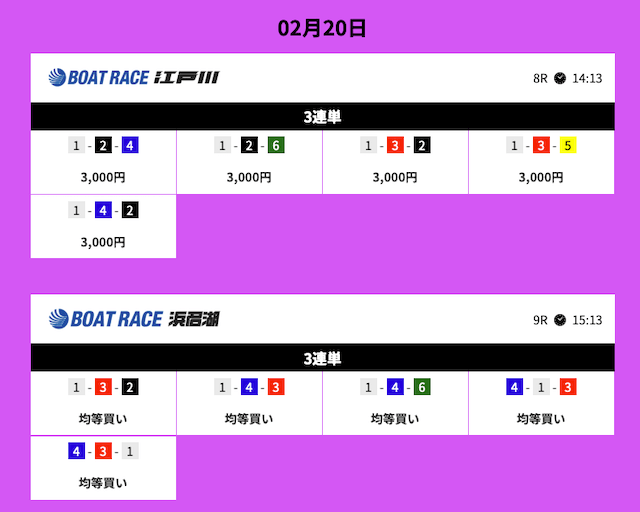 いずれのレースも1レースあたり5点という少点数で当てることができています。