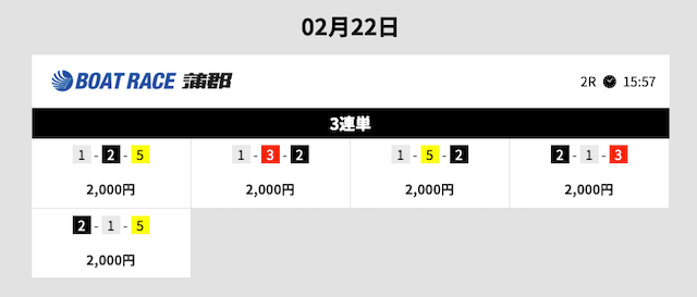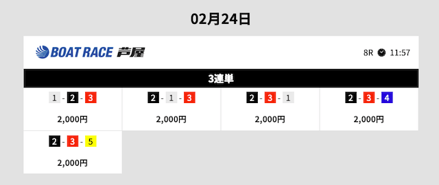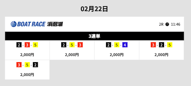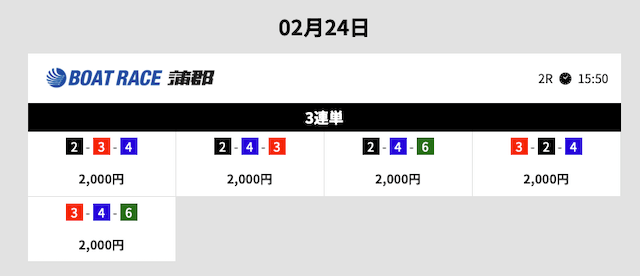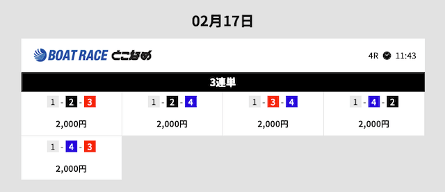 | 1–2–4 | 5.6倍 | 2,000円 | 11,200円 |