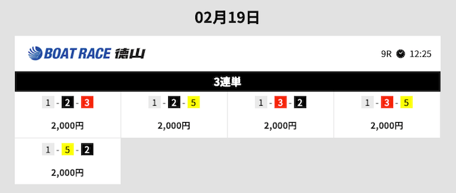 | 2–1–3 | 13.5倍 | 2,000円 | 27,000円 |