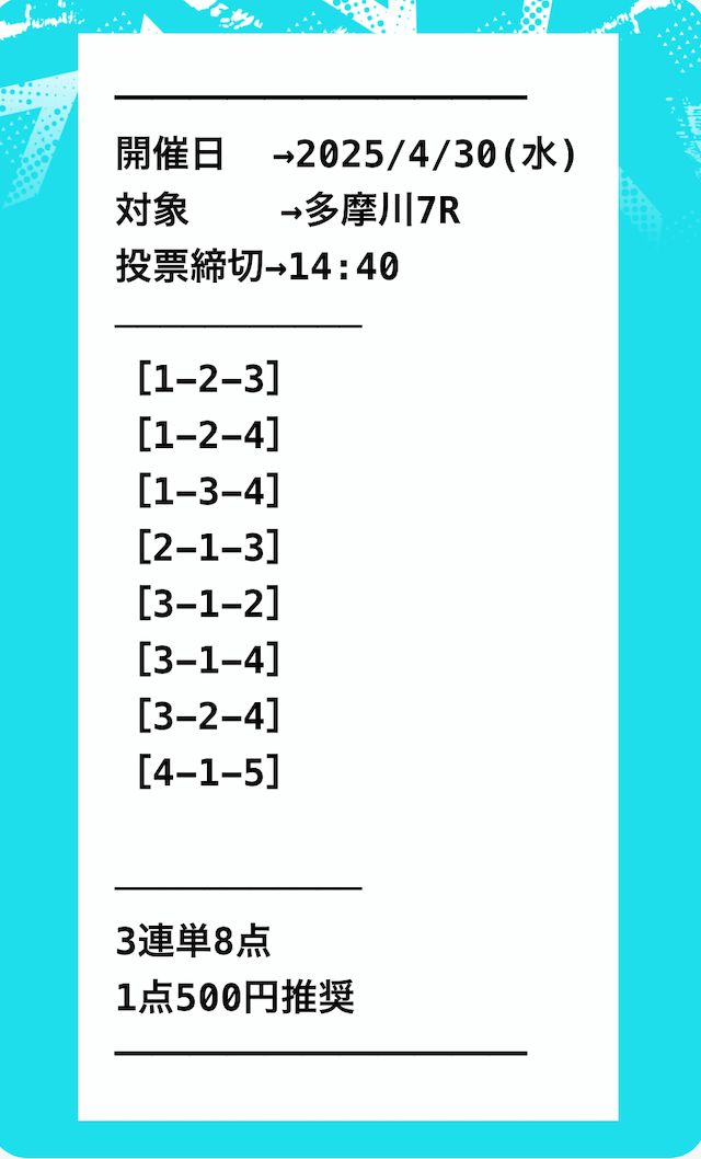 そういった情報網から得られる「注目するべきレース」の情報をLINE公式アカウント登録者限定で配信する用意があります。