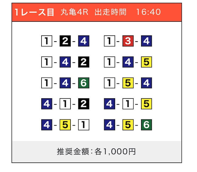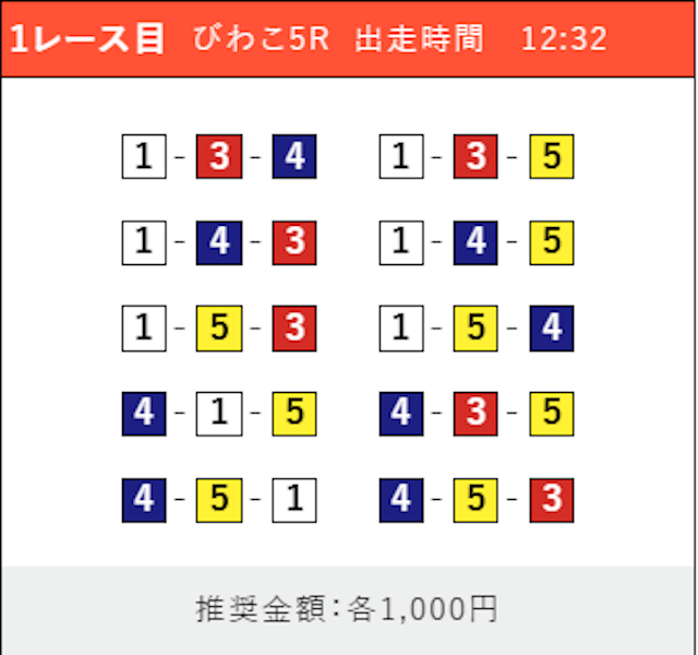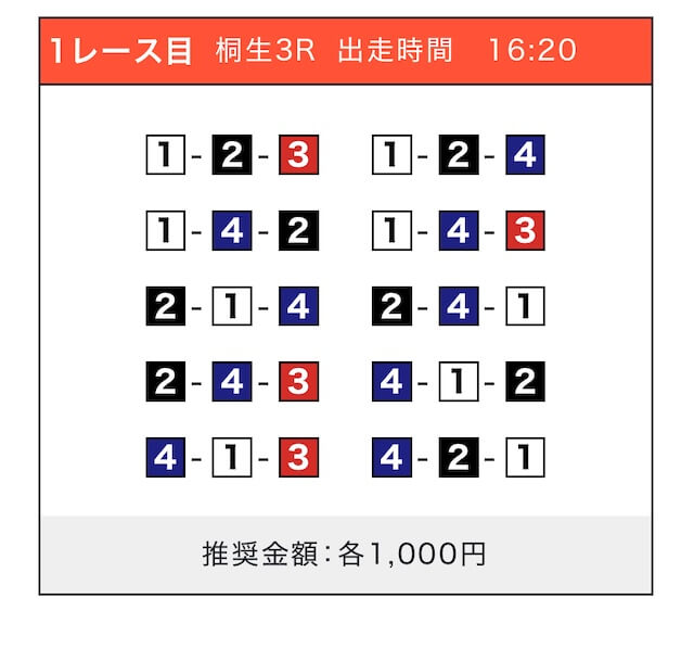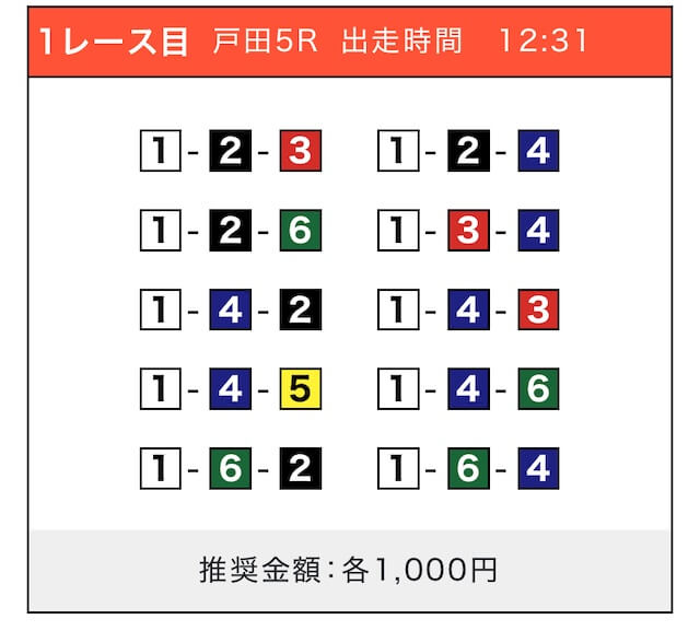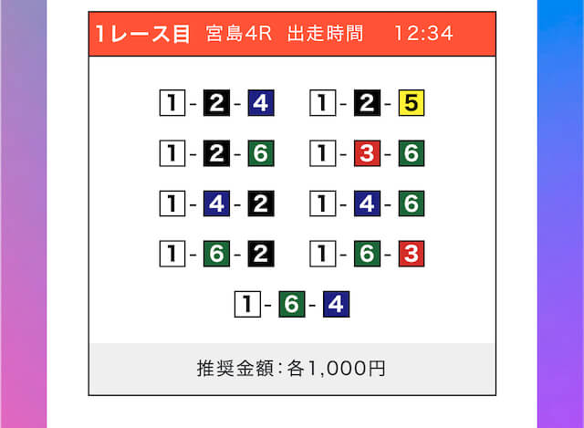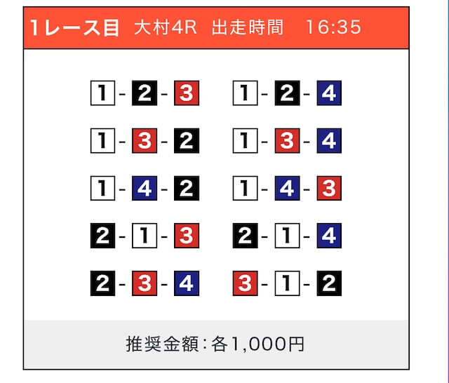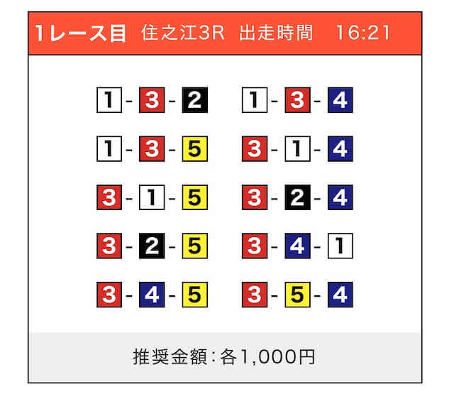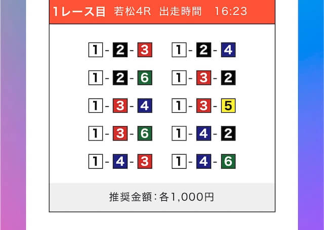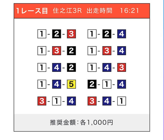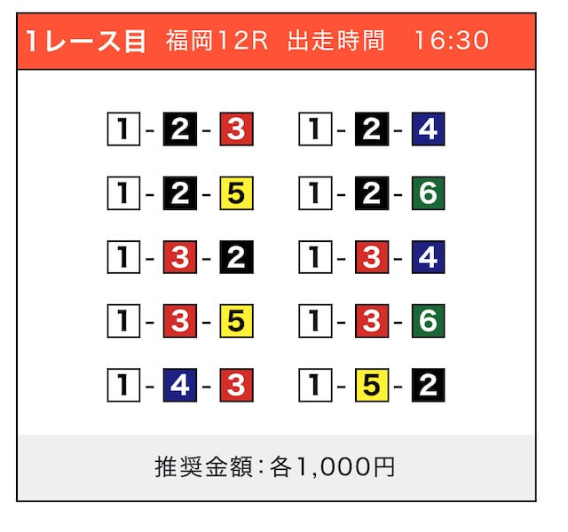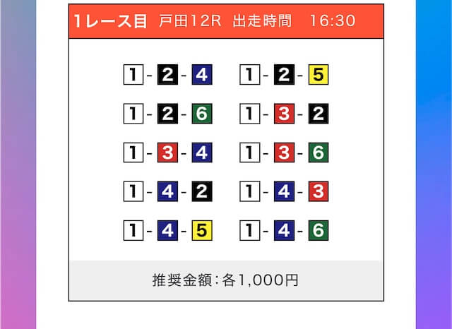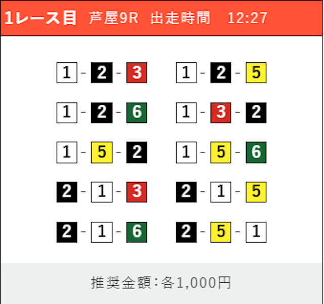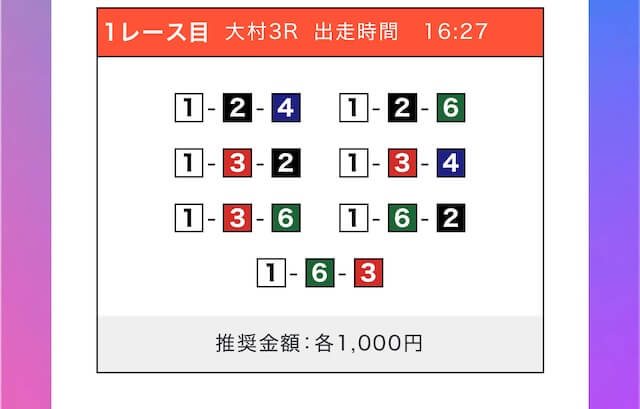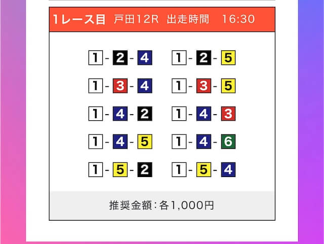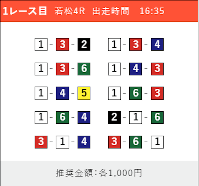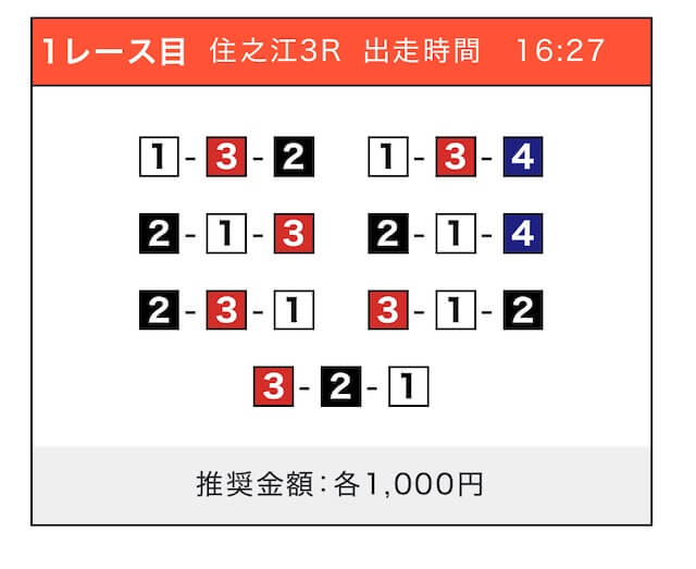 学舟の無料予想の推奨投資金額は1点100〜1,000円と自分で決める形式となっています。
