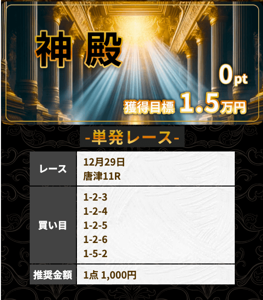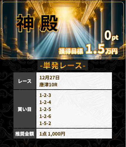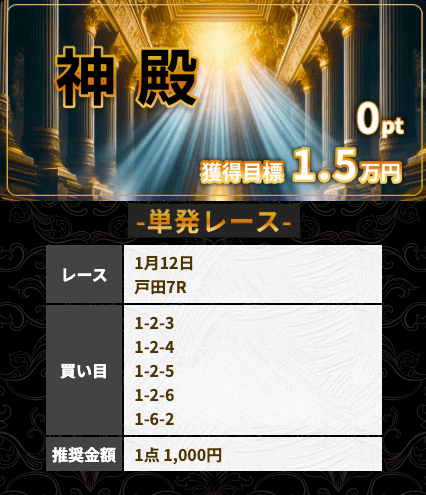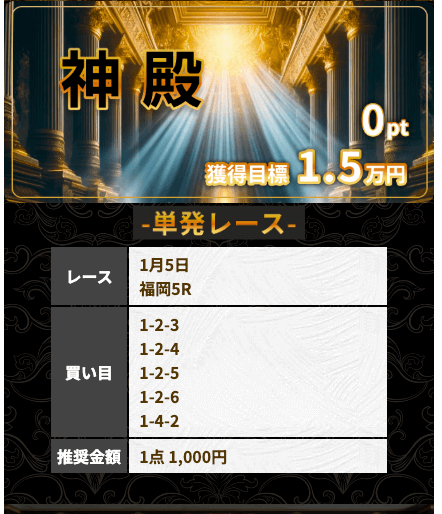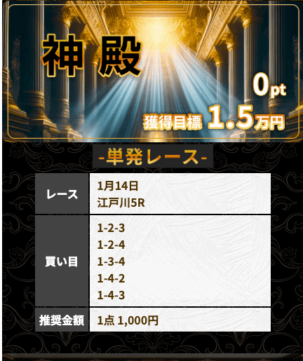 | アテナ | S | ★★★★★ | 目標金額を達成! 一撃高配当を稼ぎたい方におすすめ |