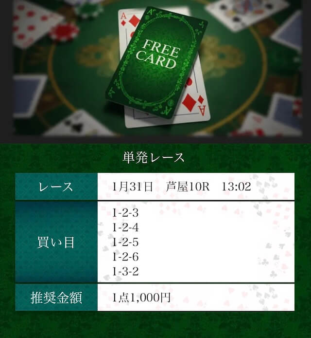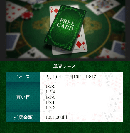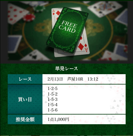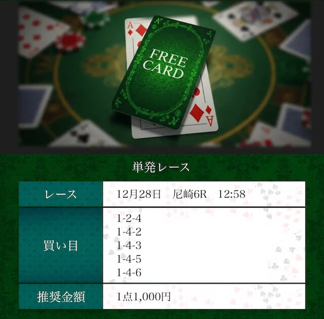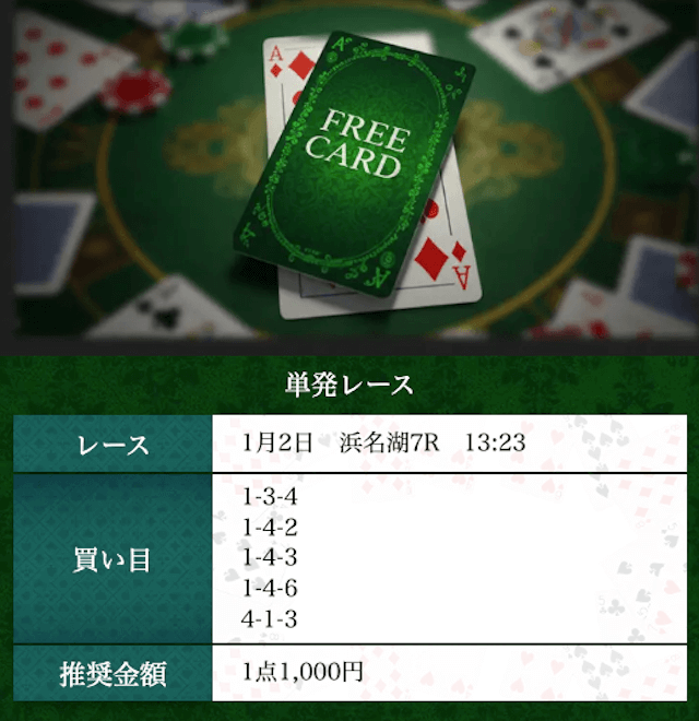 無料予想で着実に稼ぎつつ有料予想を試すのにおすすめ! - 無料予想→『FOUR CARD』