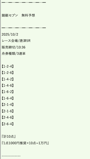 けっこうな回収率向けの予想を公開していて、ほとんど当たるのでがっぽりです。