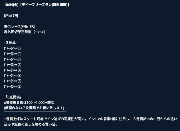 ボートテクニカルの会員ページでは、無料予想の詳細に関する記載がありませんでした。
