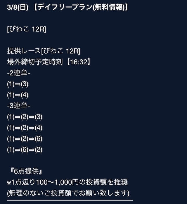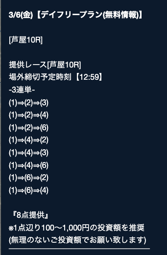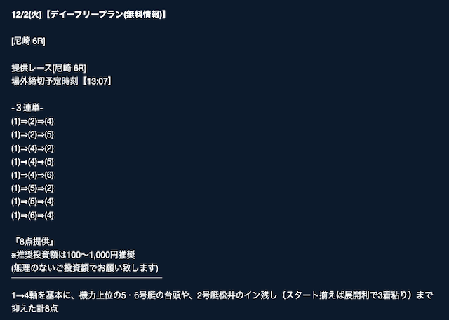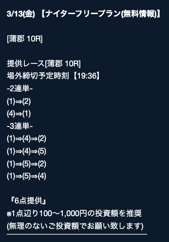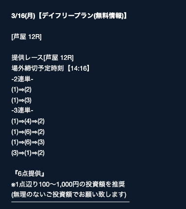 そちらの詳細では、公開日や公開時間、買い目点数などをチェックすることができますが・・・