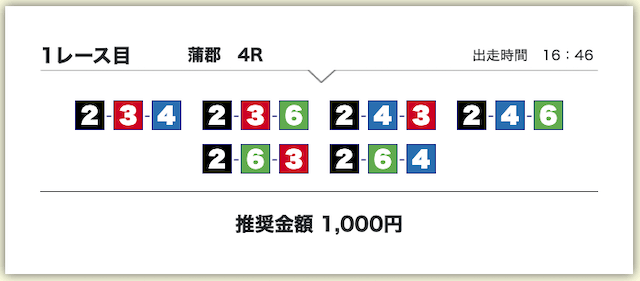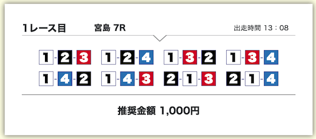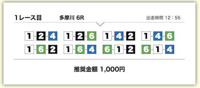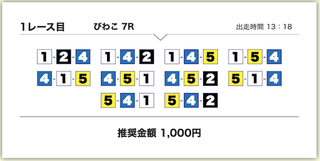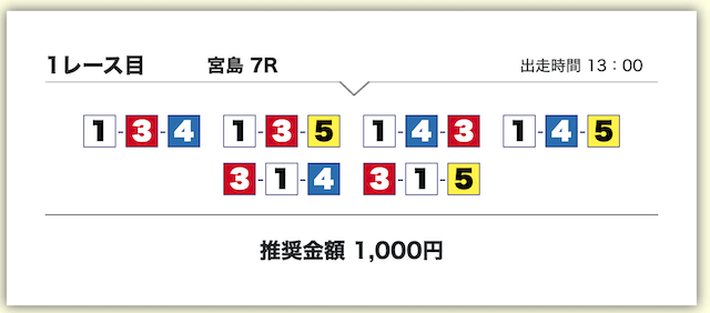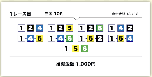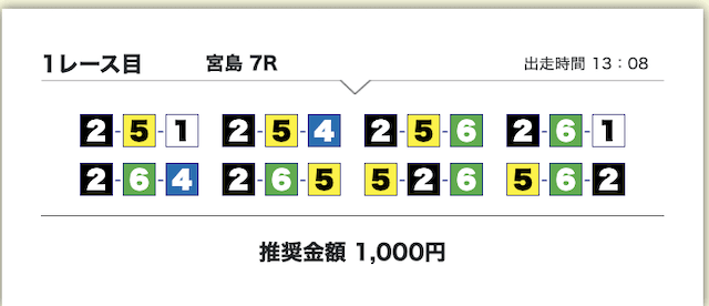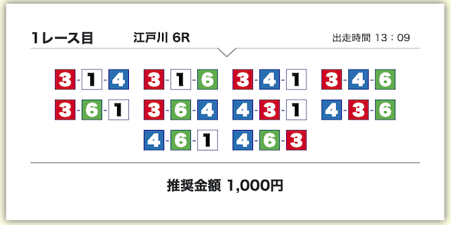 それでいて、各買い目の投資金額は1,000円で統一されているため、もしもボートタイムの推奨通り勝負したいのであれば、最低でも10,000円は軍資金として用意しておきましょう。