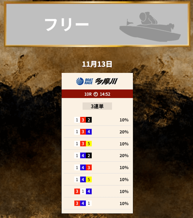 これは、トレジャーハンターの情報力がレースデータや気象条件を加味して調整している可能性が高く、荒れやすい水面でも安定して結果を出していることを意味しています。