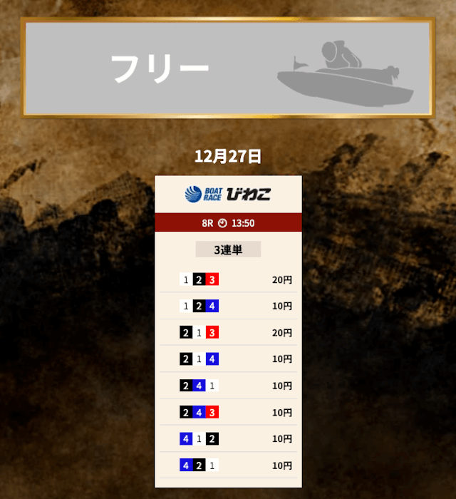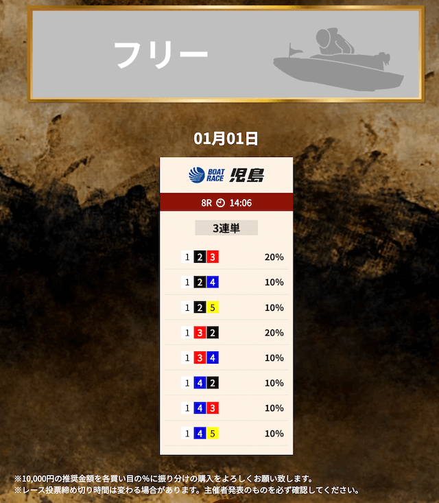 オッズを見てマイナスになりそうであれば、舟券代を調整してください。