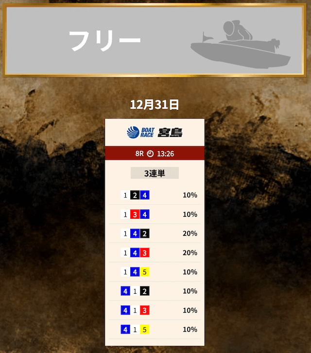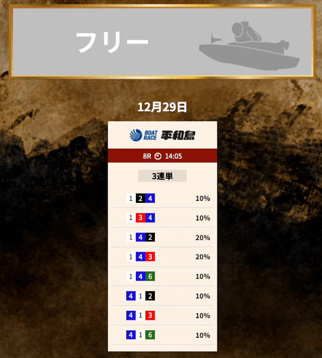 6号艇が1着予想だったので焦りはしましたが、さすがは競艇トレジャーハンター。
