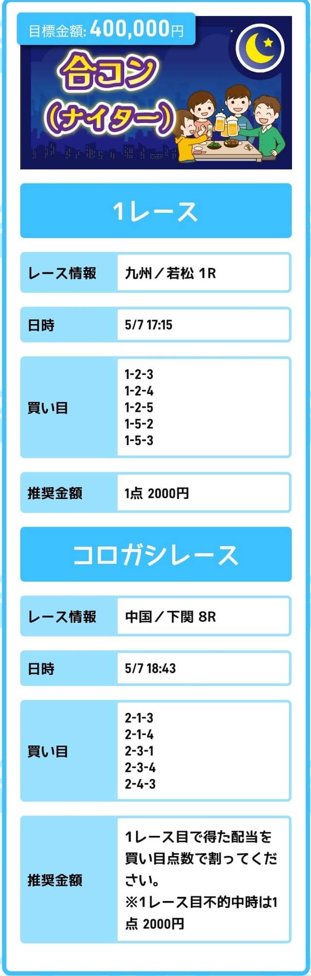 ▶無料予想で着実に稼ぎつつ安定感を持って有料予想に参加したい方に最適 - 無料予想→『合コン』