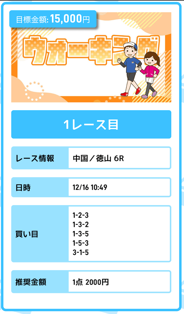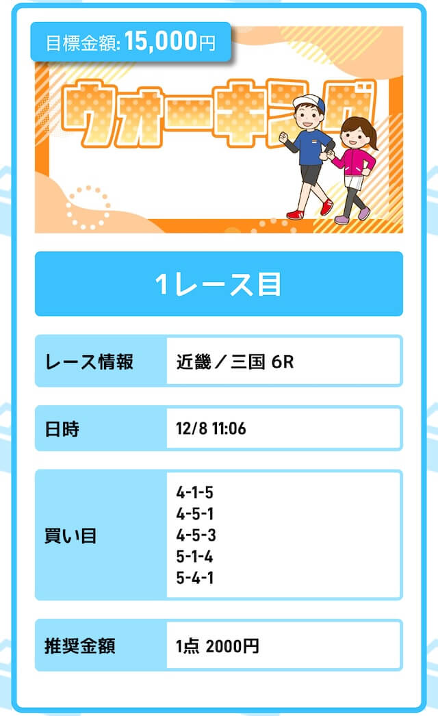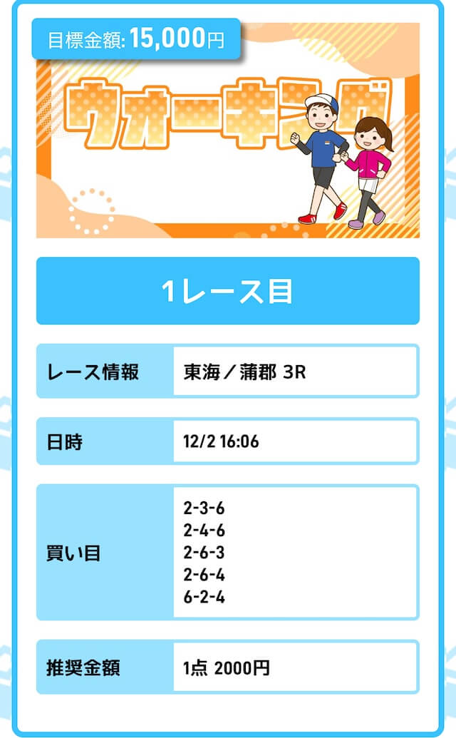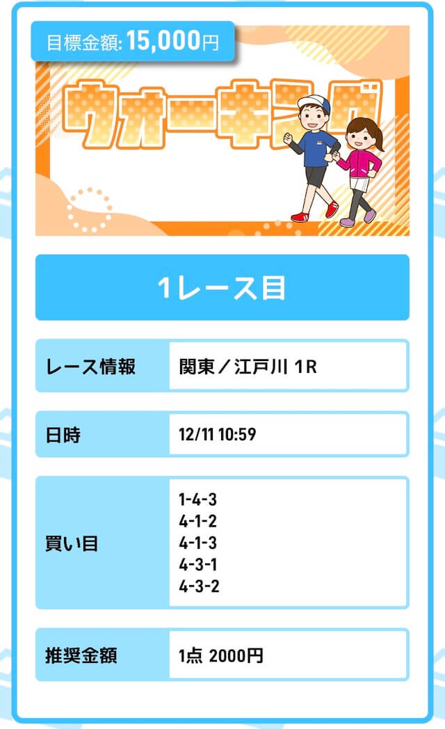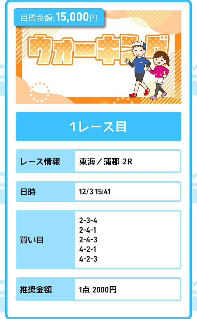 - 投資金額:10,000円(1レース目)
