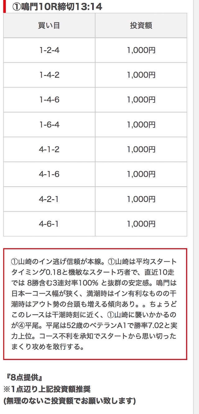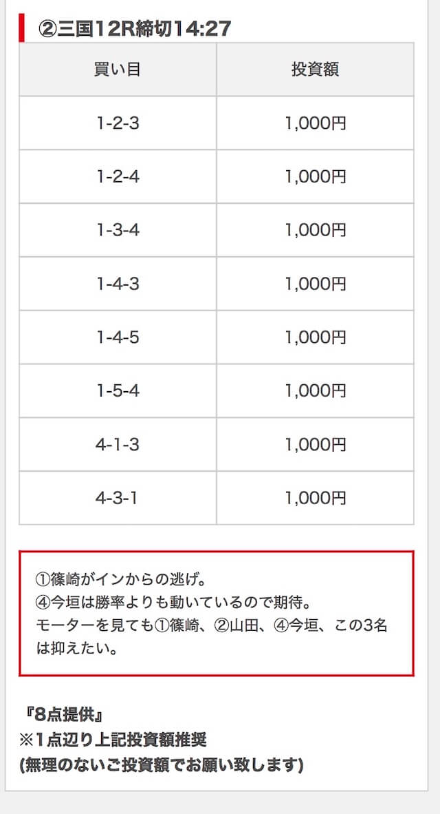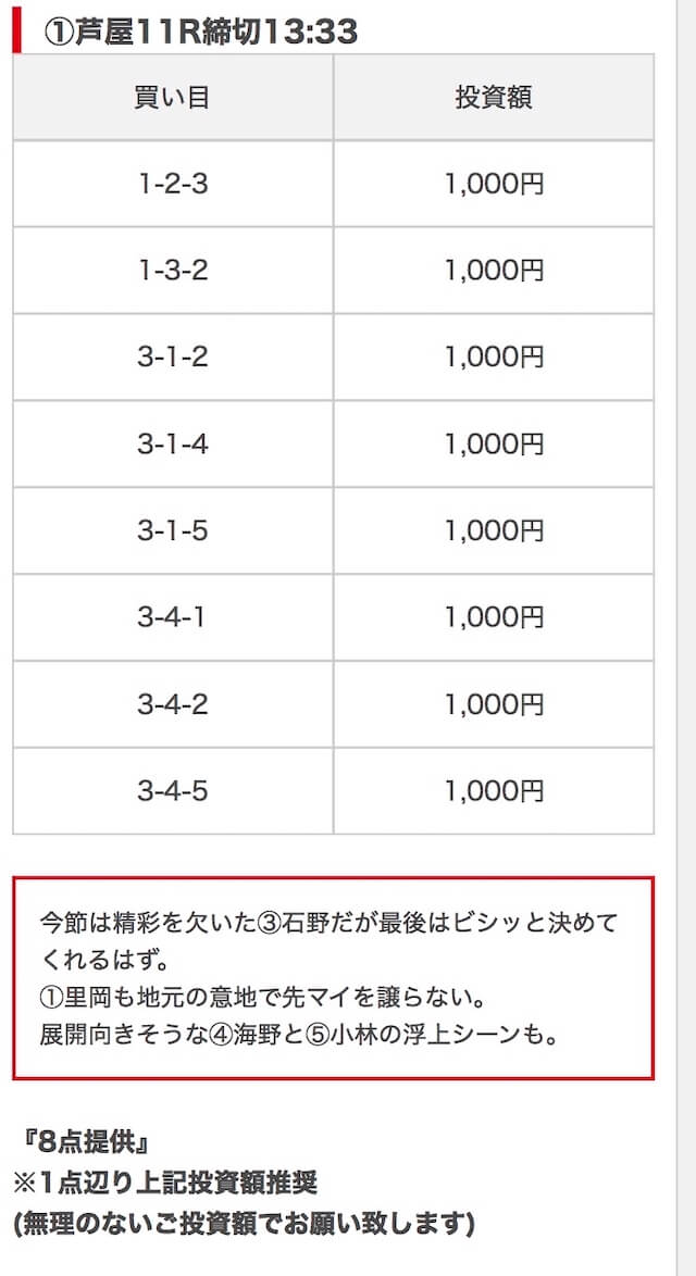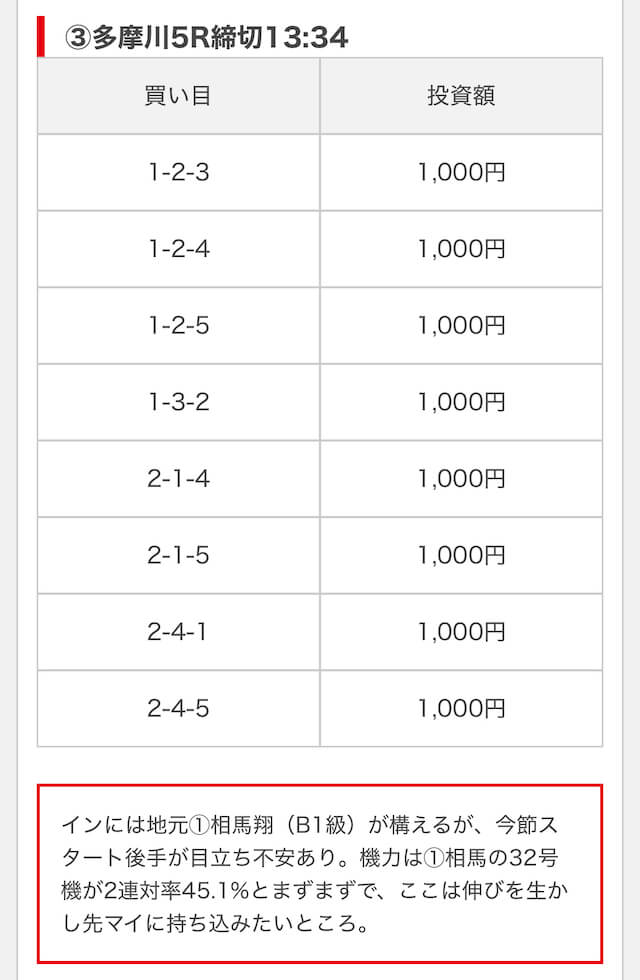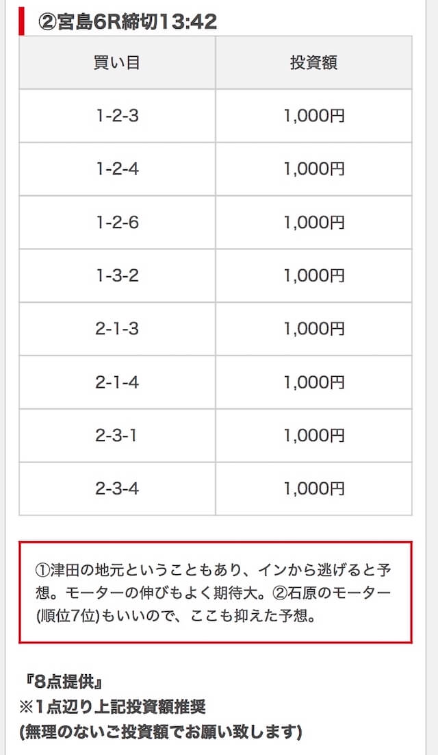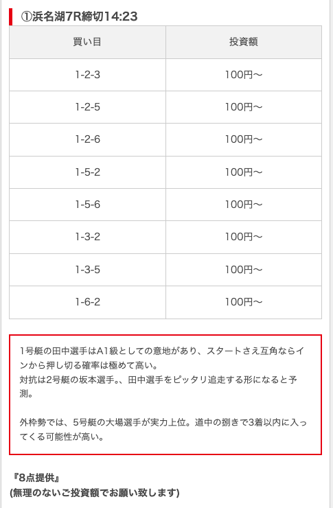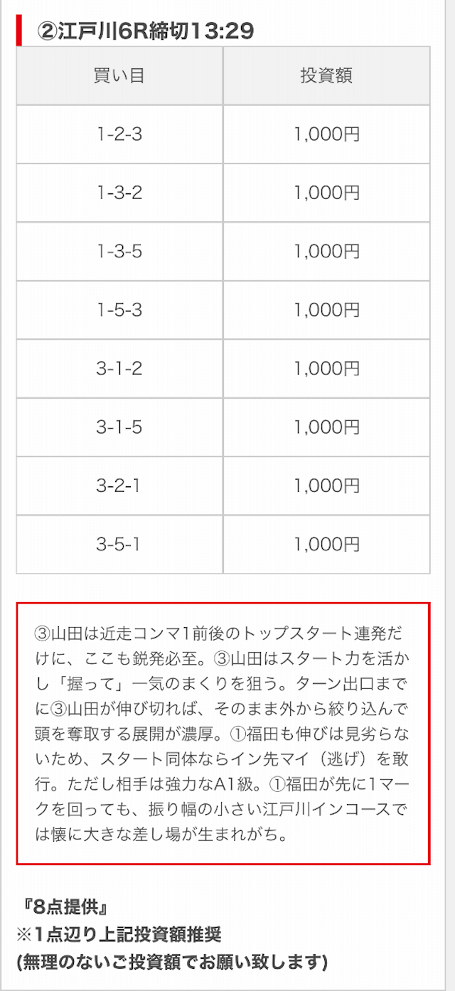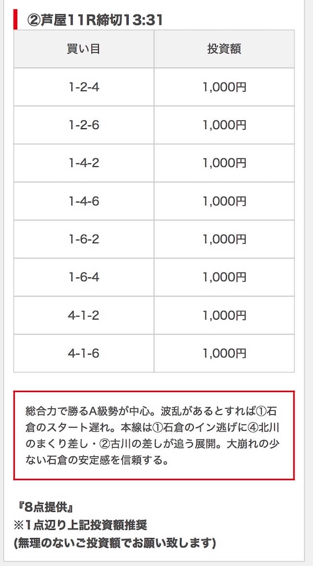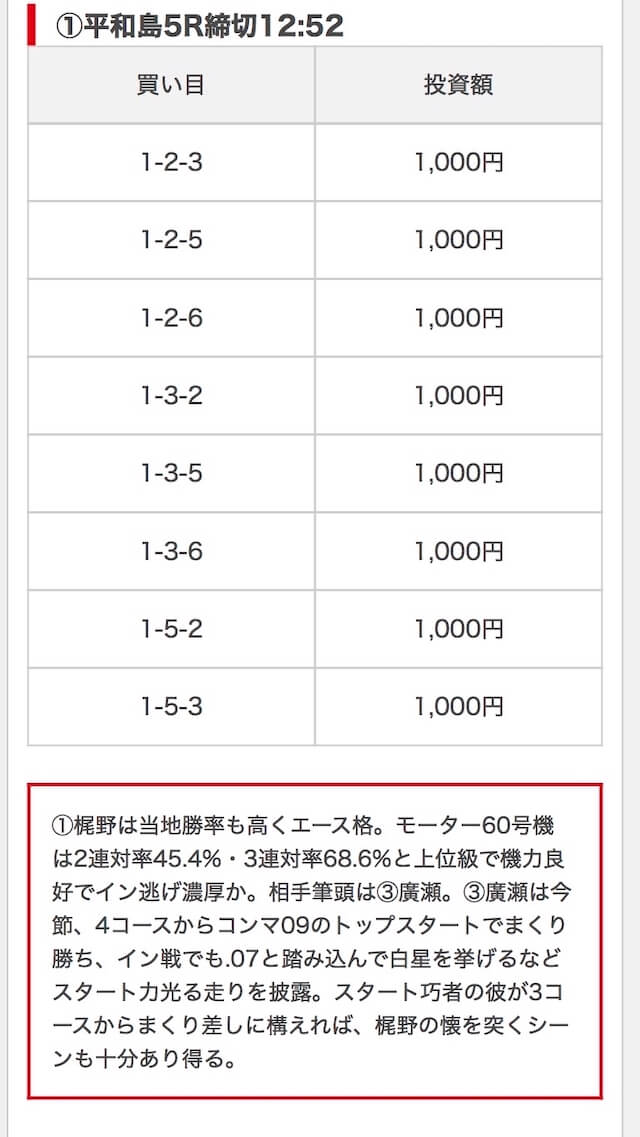 競艇ブーストの買い目には見解も添えられているので併せて御覧ください。
