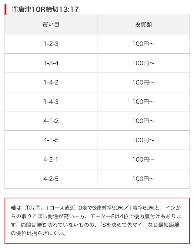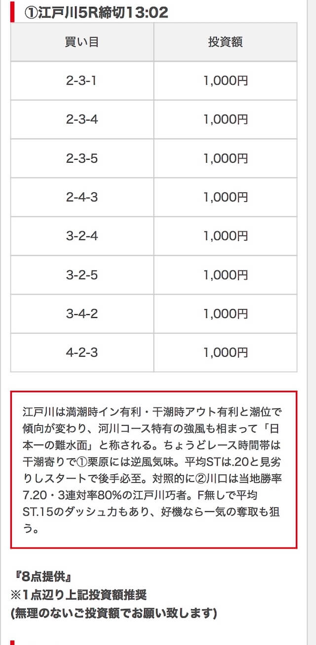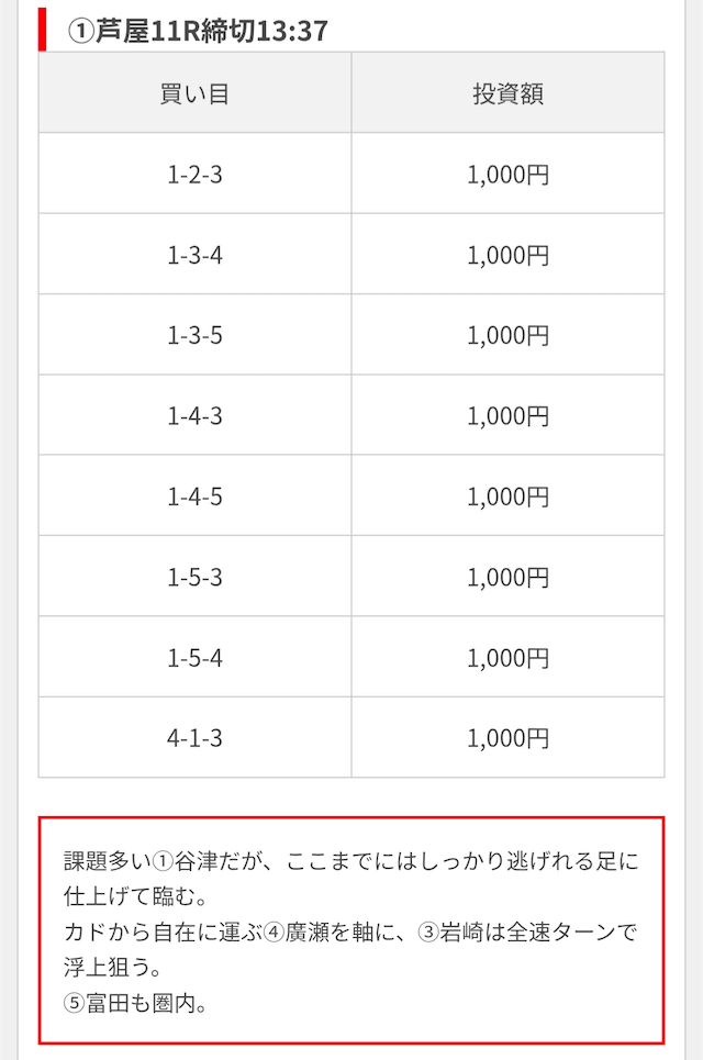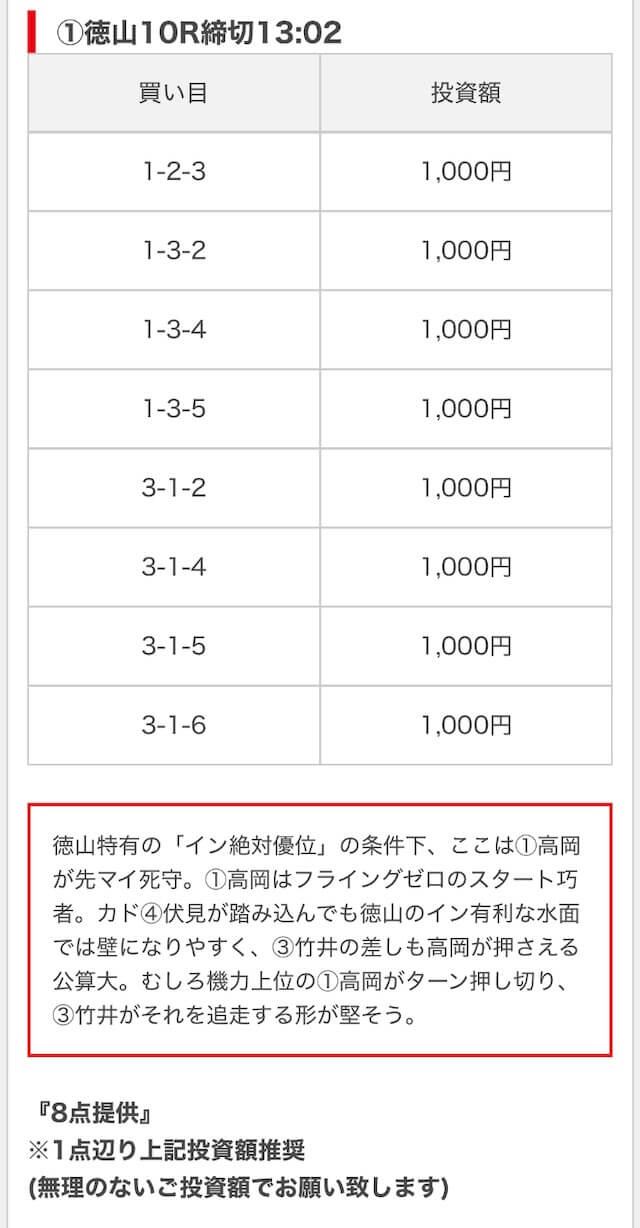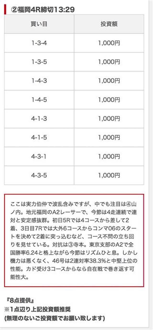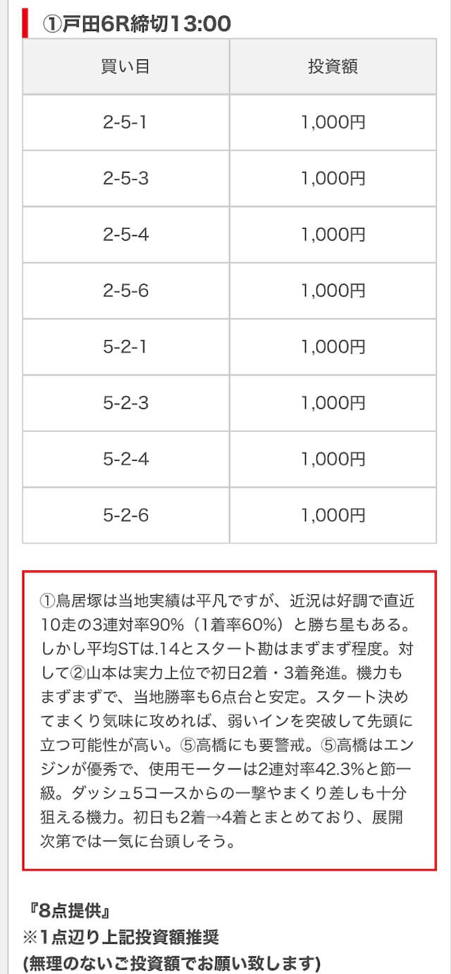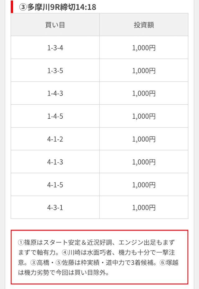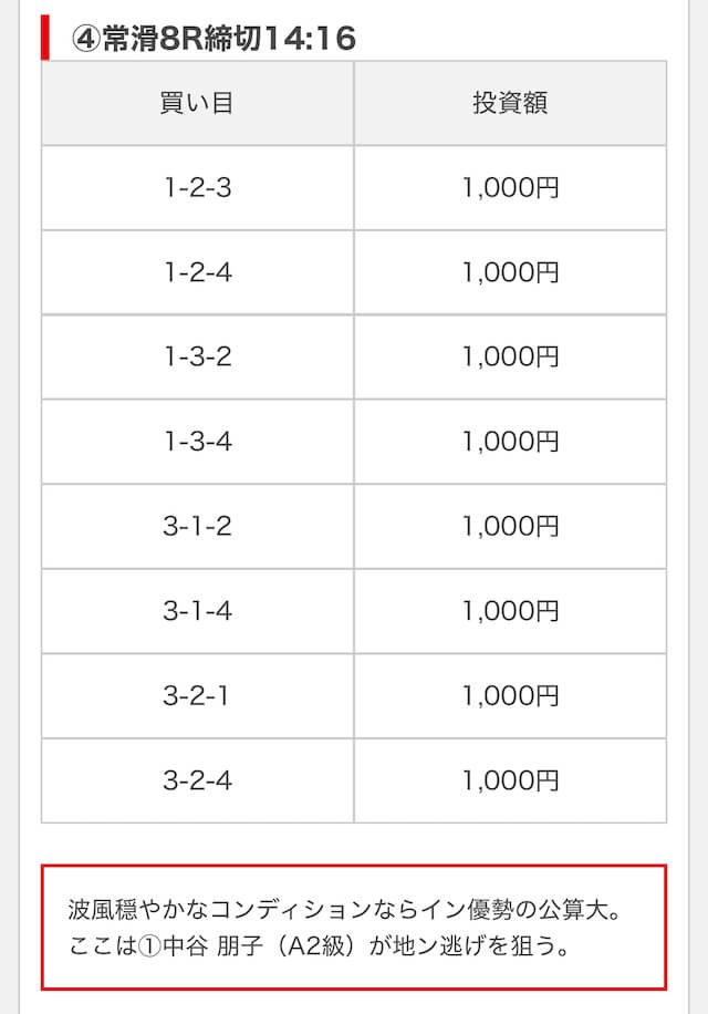 競艇ブーストの買い目には見解も添えられているので併せて御覧ください。