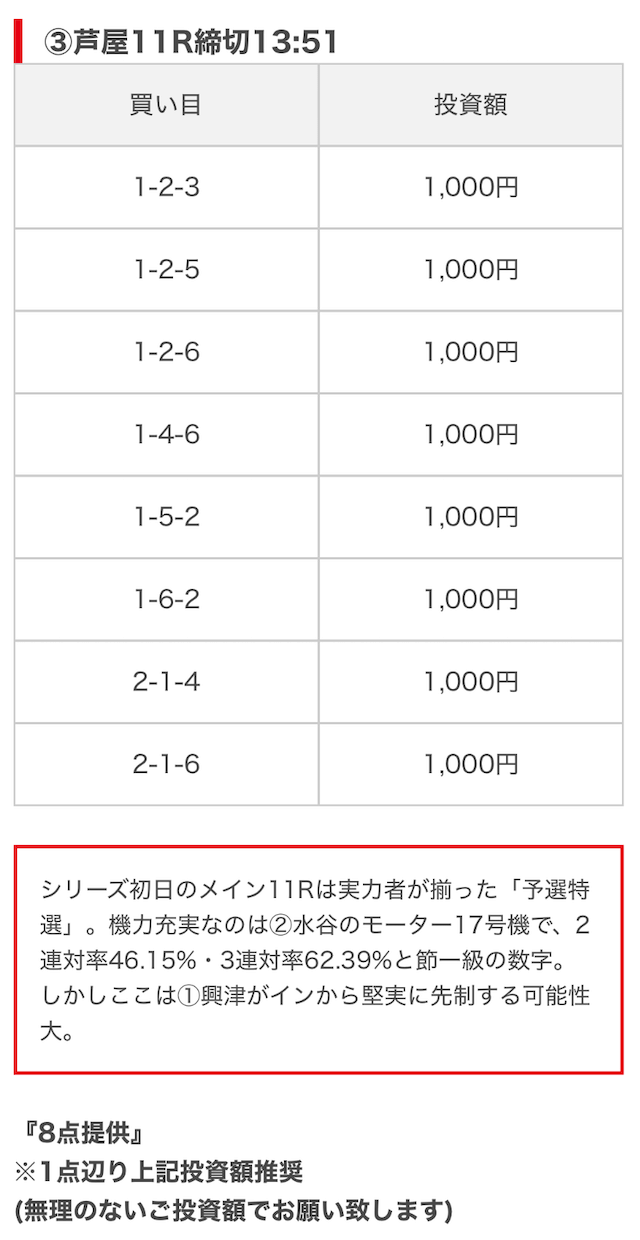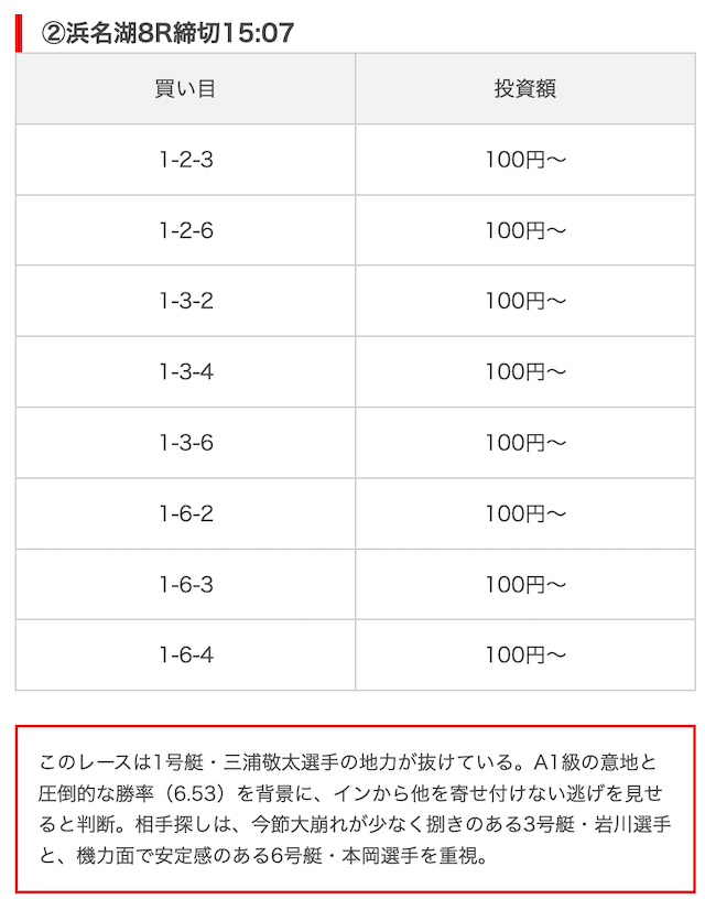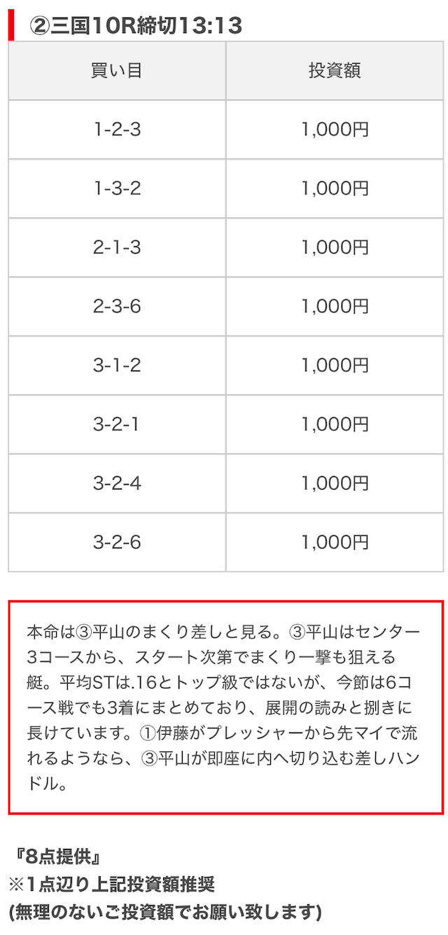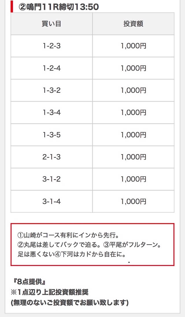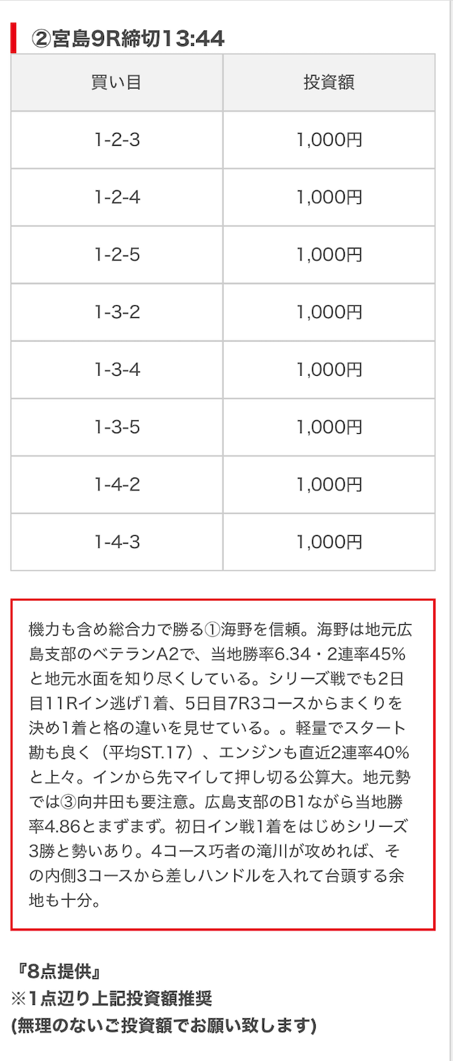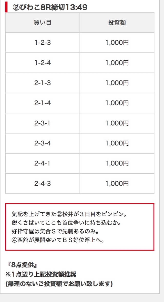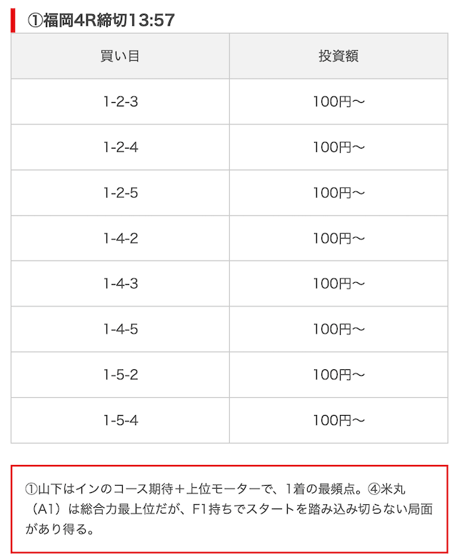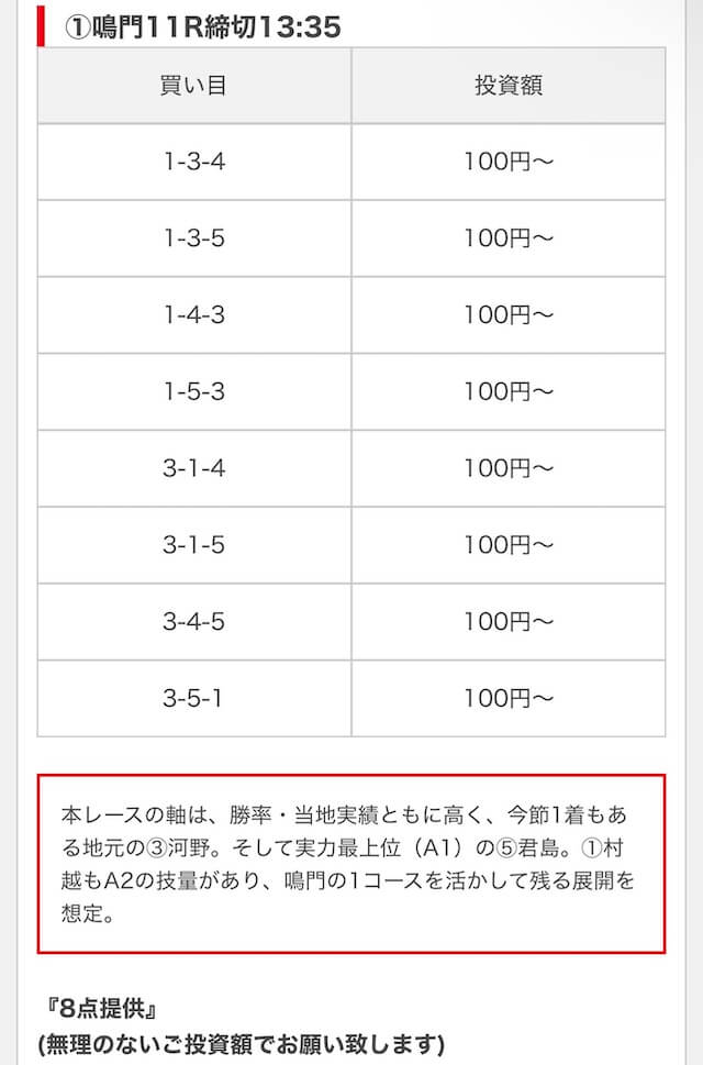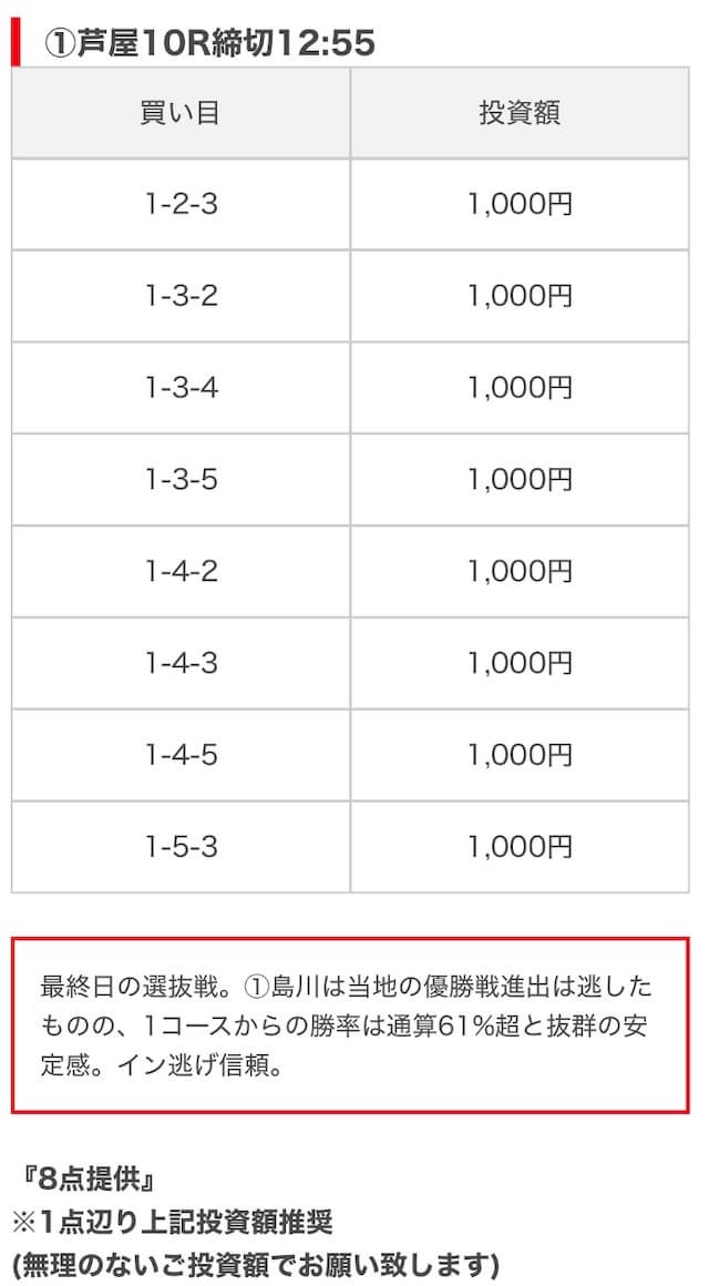 競艇ブーストの買い目には見解も添えられているので併せて御覧ください。