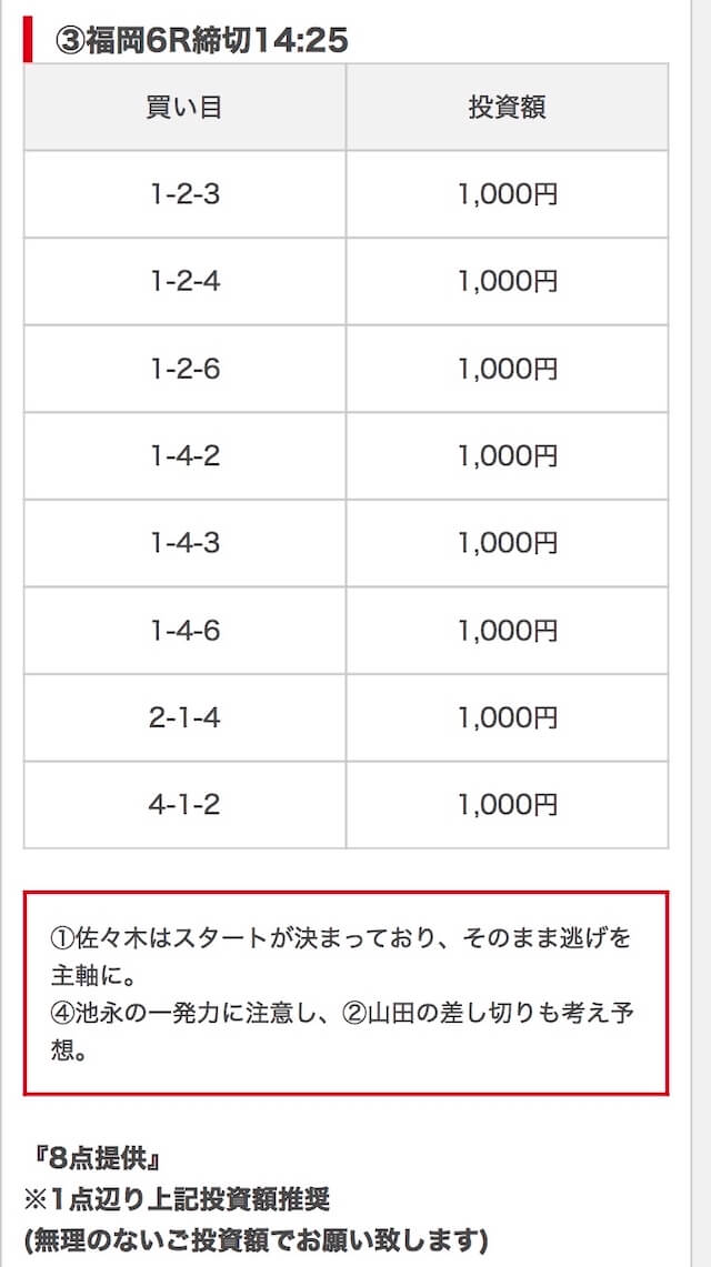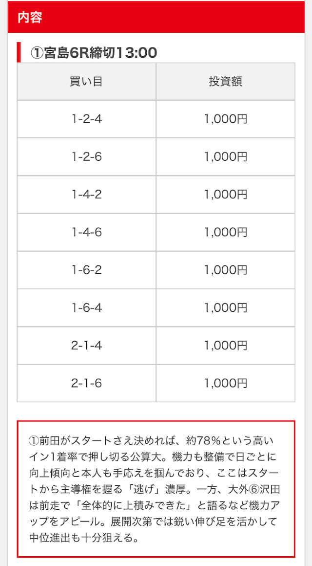 とはいえ、無料予想ながらクオリティが高いことは間違いないので「まずは無料で試したい」というユーザーにも自信を持っておすすめできるサイトです。