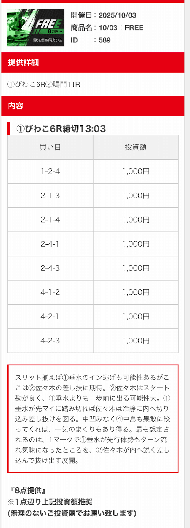 - 有料予想にはお得に参加できるプランがあり、精度も高い
