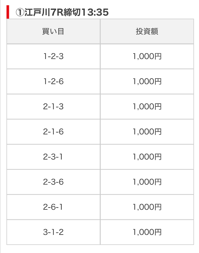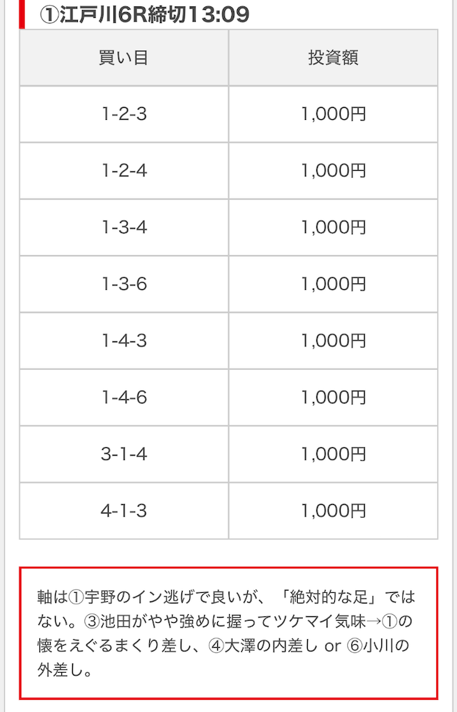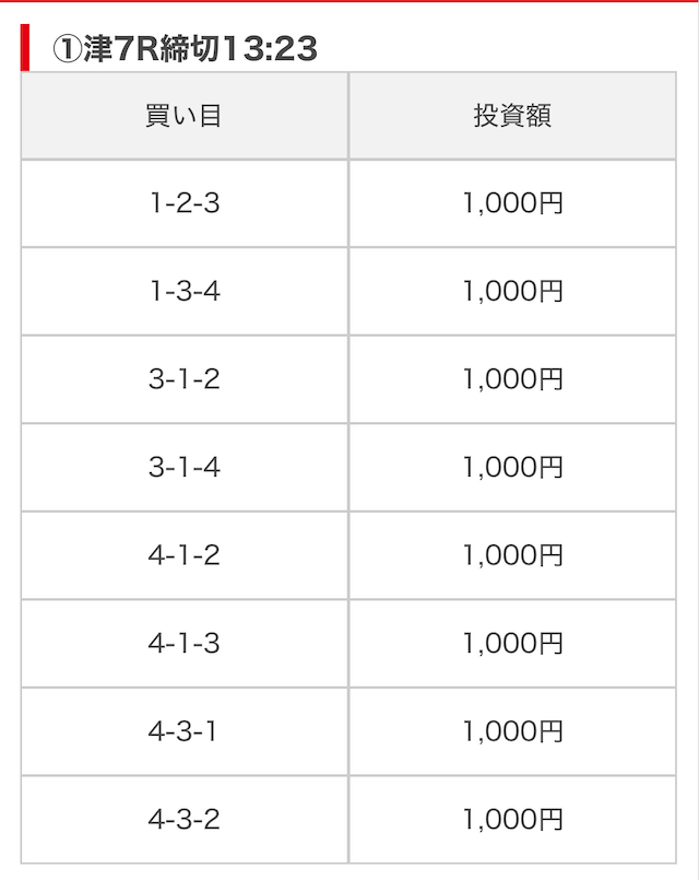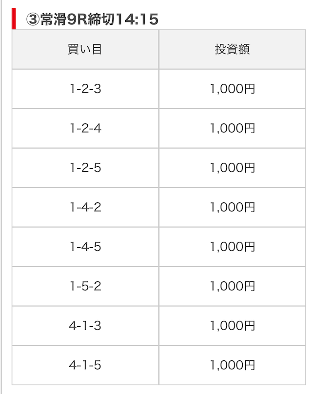 そして、公開された買い目がこちら。