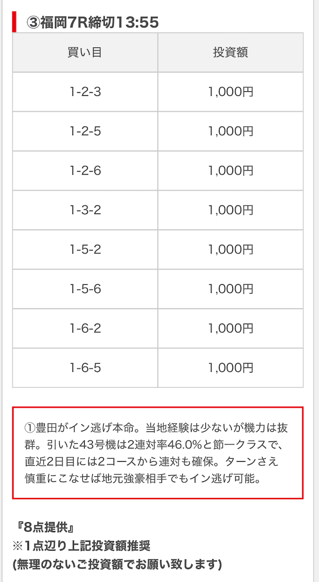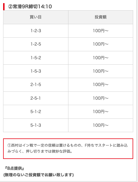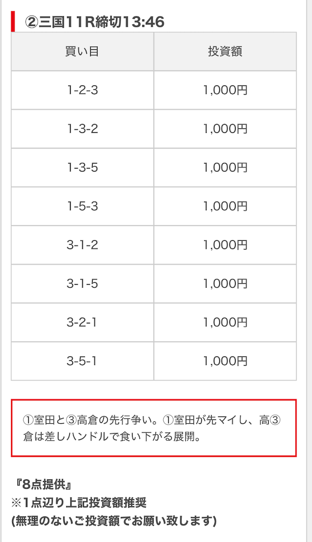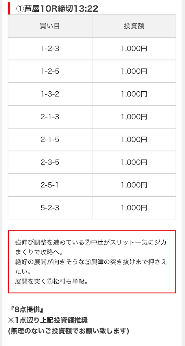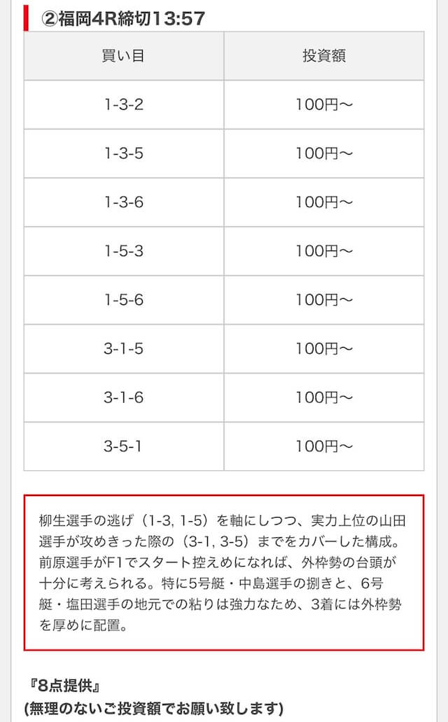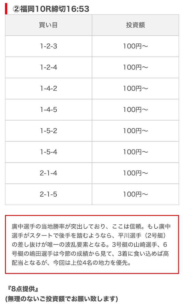 無料予想は毎日公開で投資金額は高め