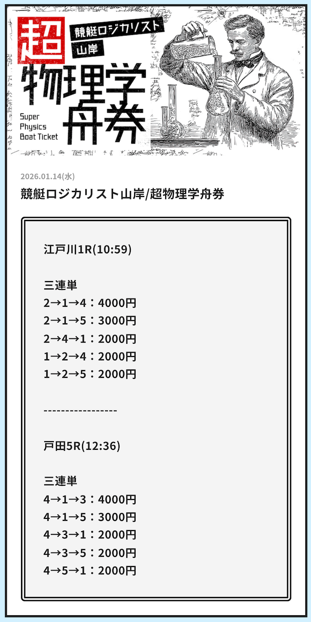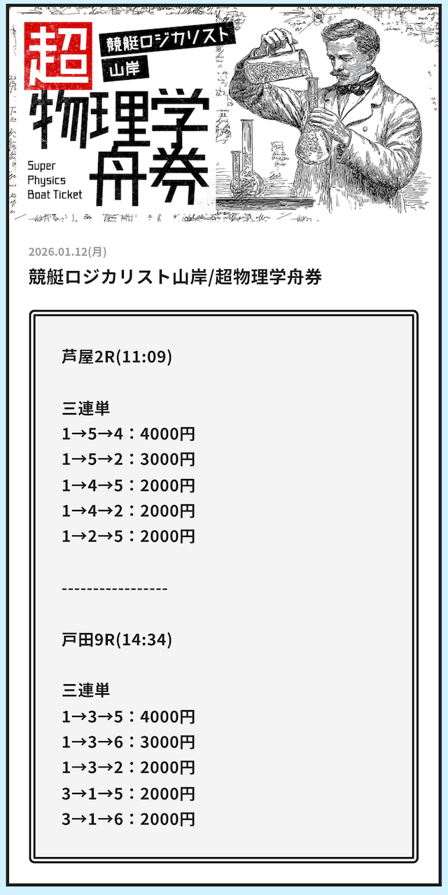1号艇を軸にしつつも、4号艇を絡めた堅実な買い目でしっかり当ててくれる。派手さはないけど、着実に収支が伸びていく安心感があります。