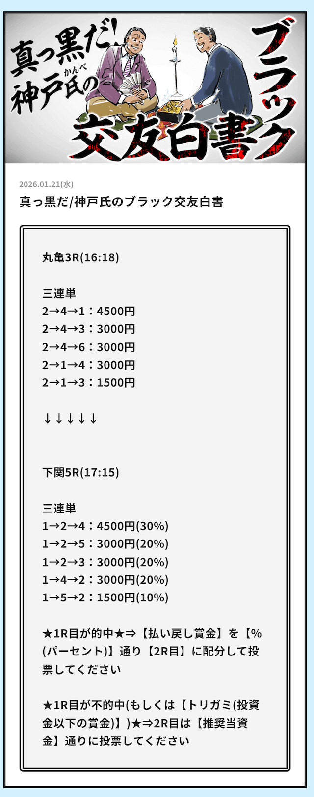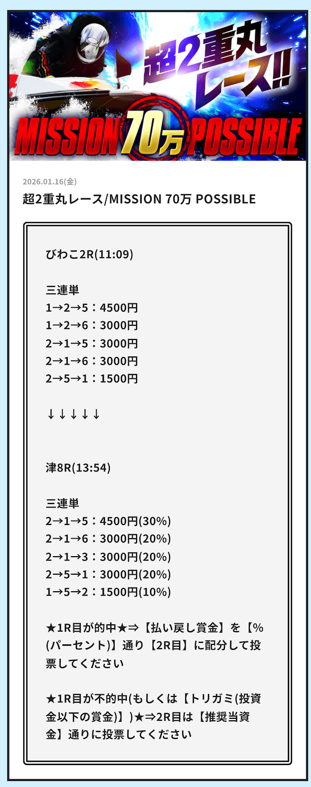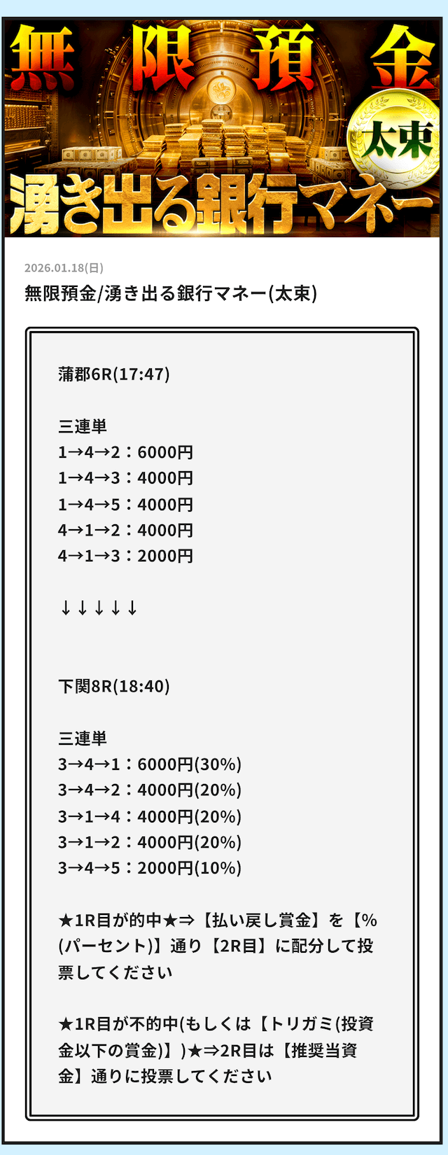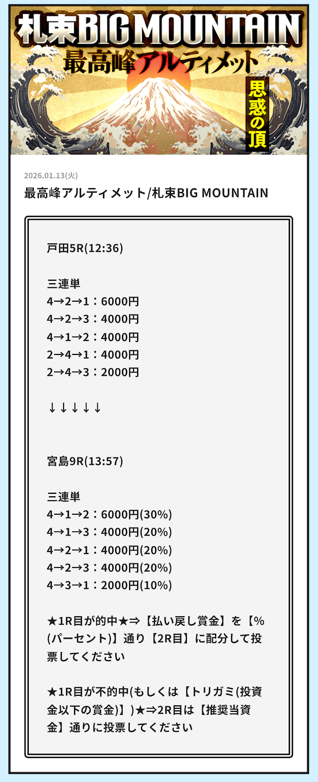 そういった情報網から得られる「注目するべきレース」の情報をLINE公式アカウント登録者限定で配信する用意があります。