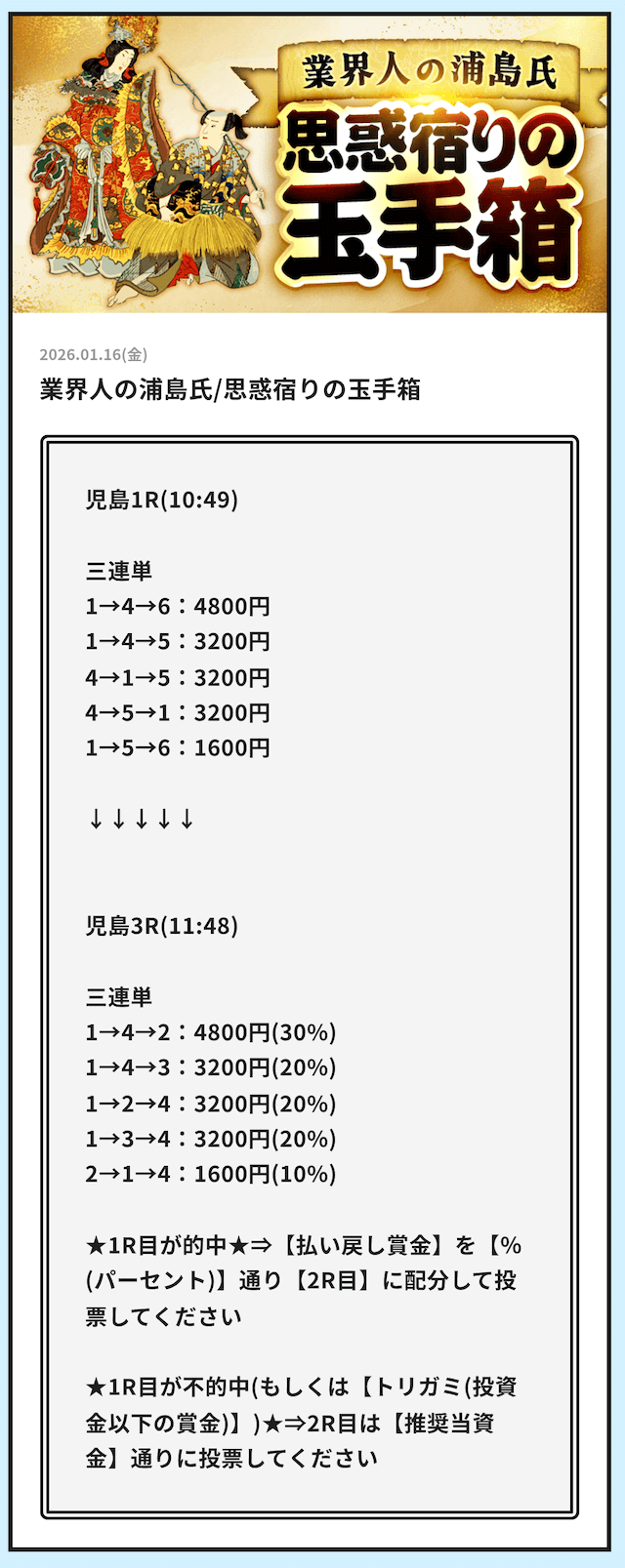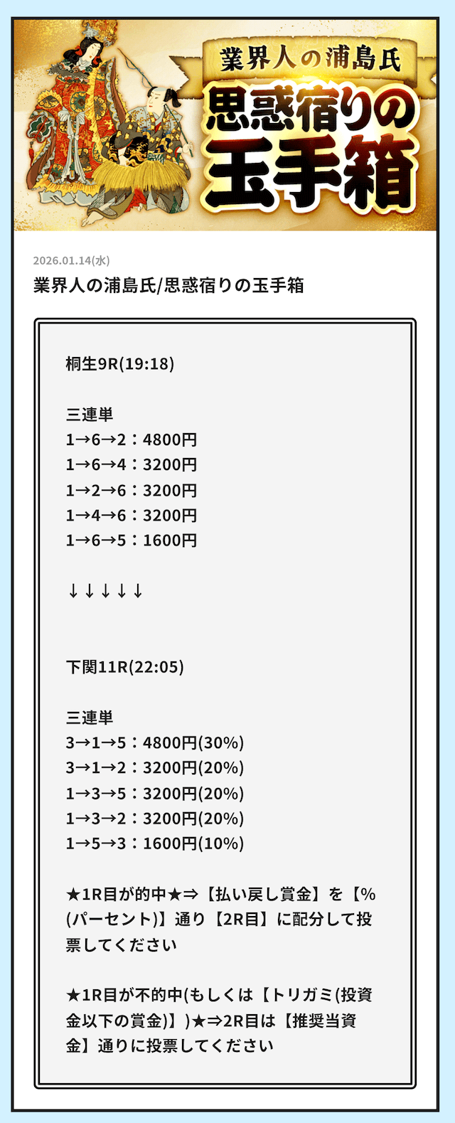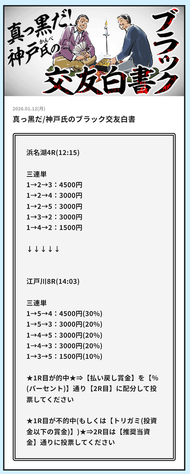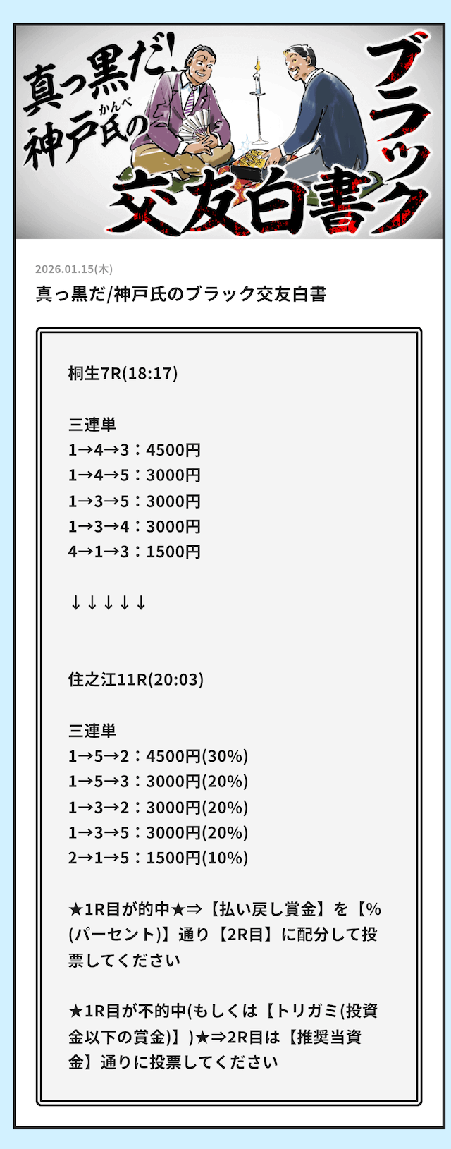 そういった情報網から得られる「注目するべきレース」の情報をLINE公式アカウント登録者限定で配信する用意があります。