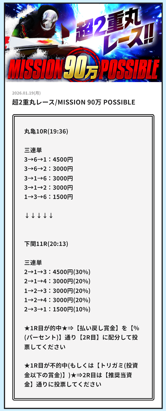| 提供レース数 | 2レース/日 |