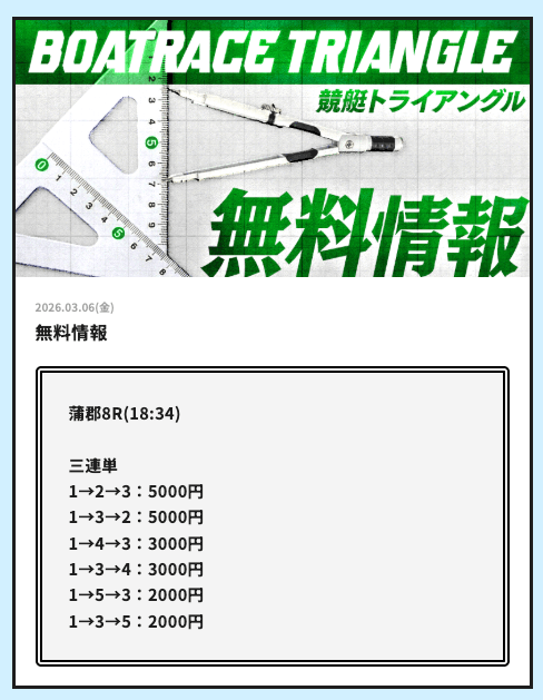 競艇トライアングルの無料予想の感想