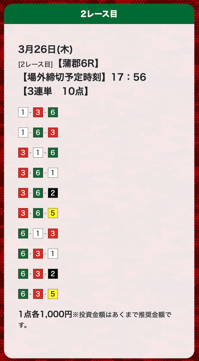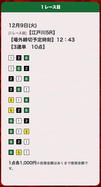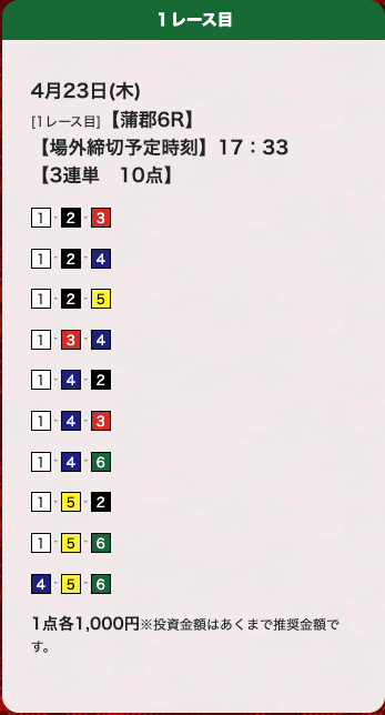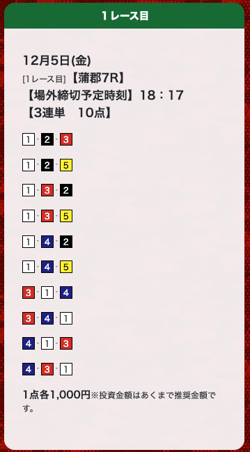 公開される予想はレースに併せて買い目点数や投資金額が調整。