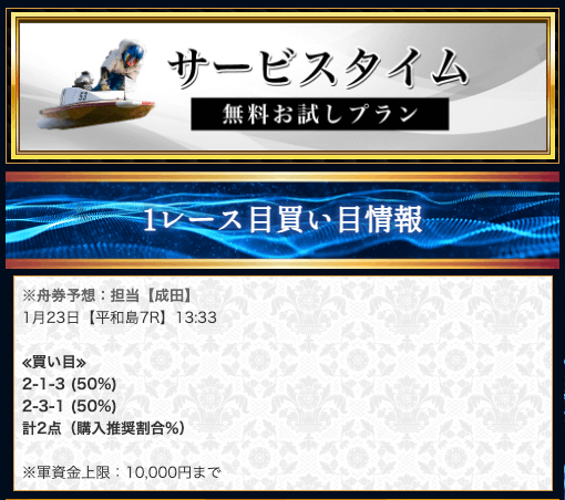 無料予想もいいと思うよ。けど一攫千金を狙いたい人は絶対に有料予想に参加するべき。最初は安めのプランに参加して当たれば他の高いプランに参加する。みたいな感じで使うと効率よく稼げるぞ。