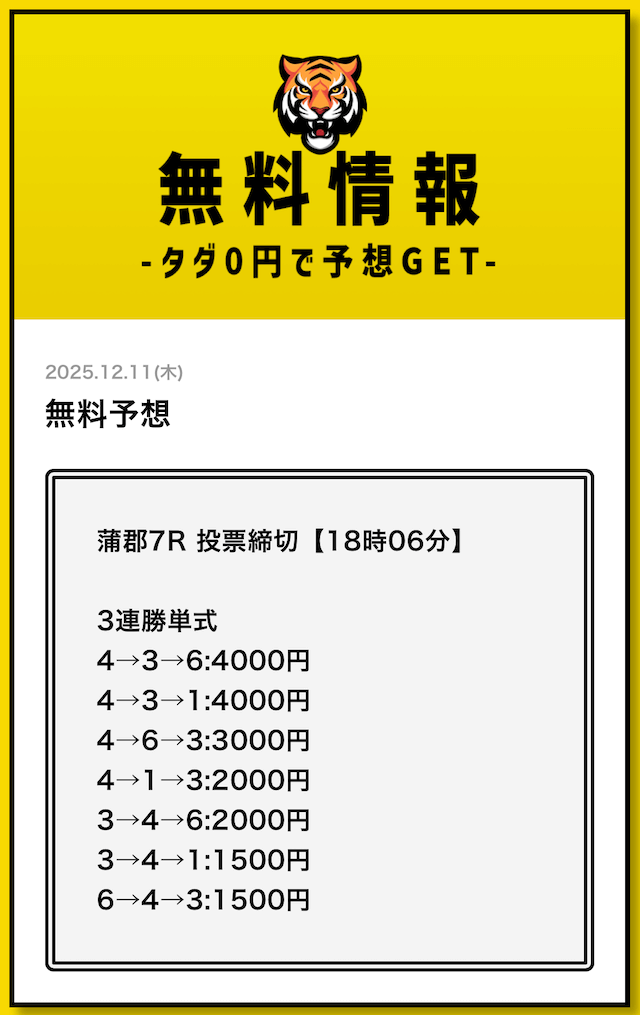 | 無料予想 | 週7公開(当日12時公開) |