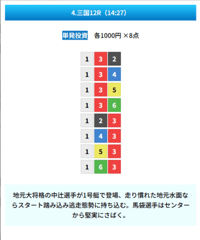 08月27日児島06R | 3-1-2 | 8,000円 | 22,200円 | 278% | |