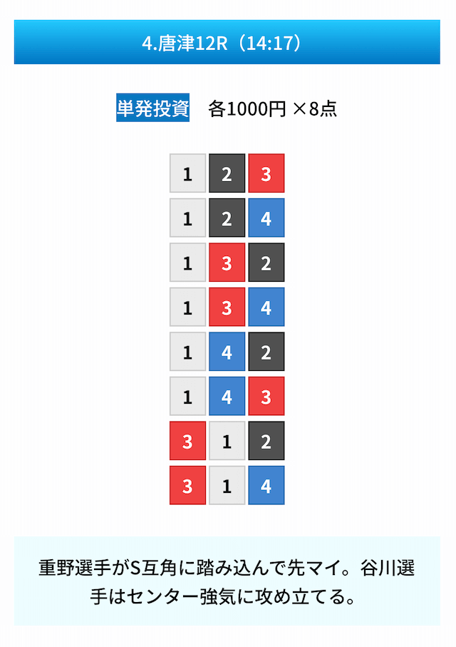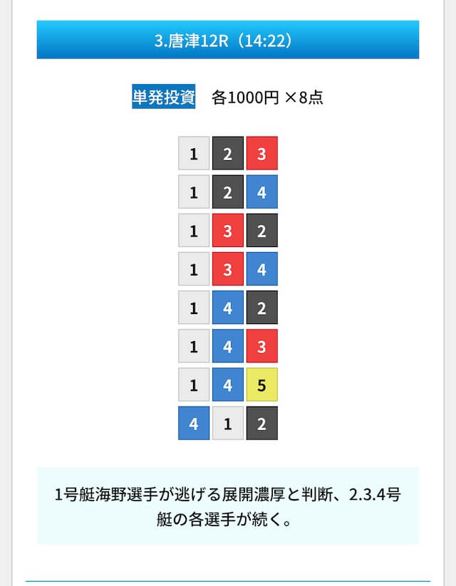 09月12日唐津12R | 1-2-4 | 8,000円 | 13,500円 | 169% | |