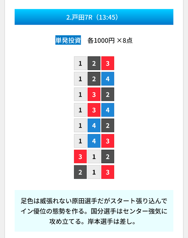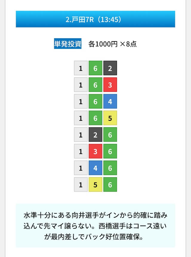 08月30日戸田09R | 3-1-6 | 8,000円 | 13,300円 | 166% | |