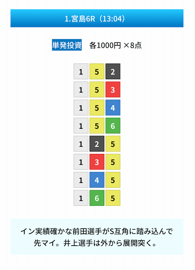 11月16日宮島09R | 1-2-5 | 8,000円 | 0円 | 0% | |