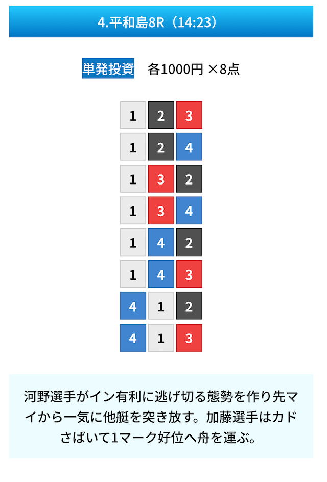 08月01日宮島08R | 1-2-3 | 8,000円 | 13,300円 | 166% | |