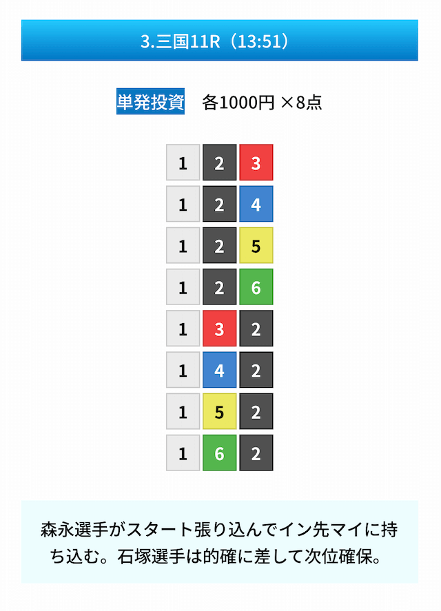 11月24日浜名湖10R | 1-3-6 | 8,000円 | 13,000円 | 163% | |