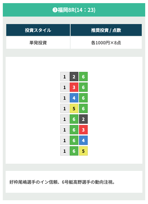2連単一点勝負で安定感を重視する