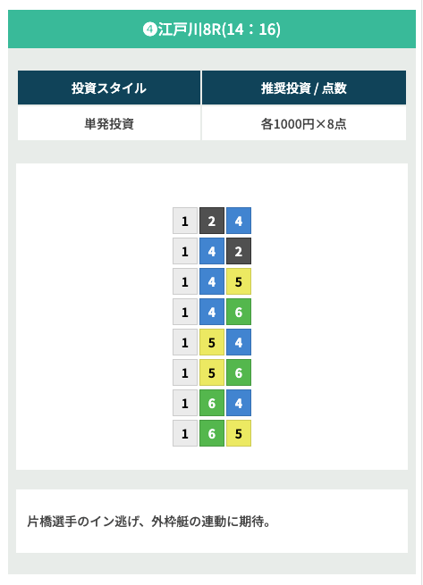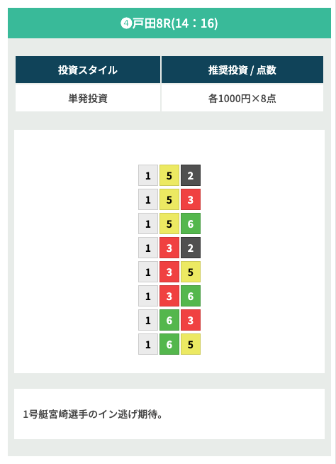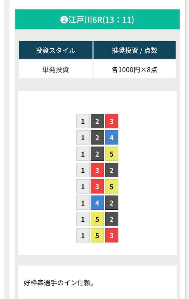 - 購入:1-2 or 1-3どちらもオッズが2.5〜4.0倍前後