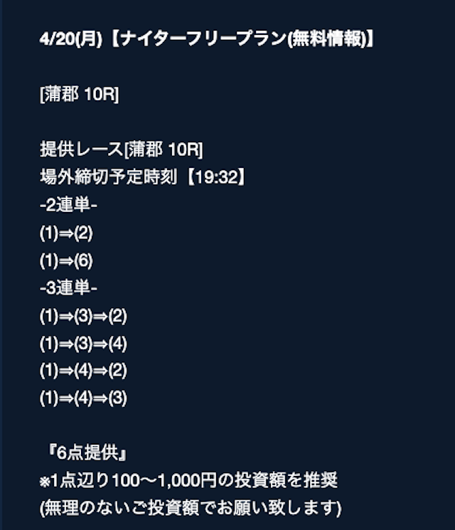 買い目の背景が明確なので納得感があり、毎日の情報に安心して乗れるのが魅力。 -